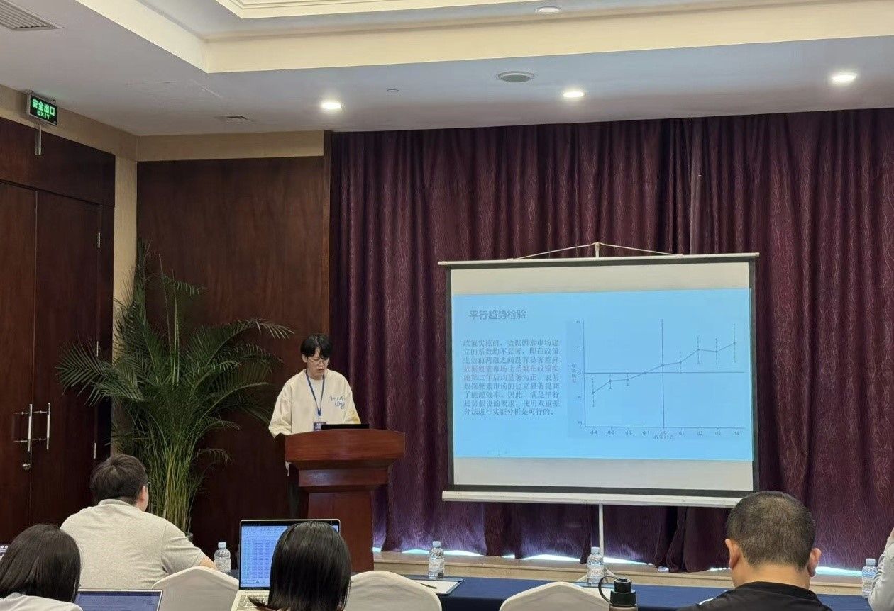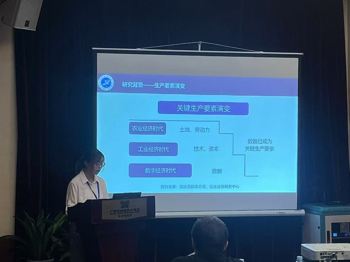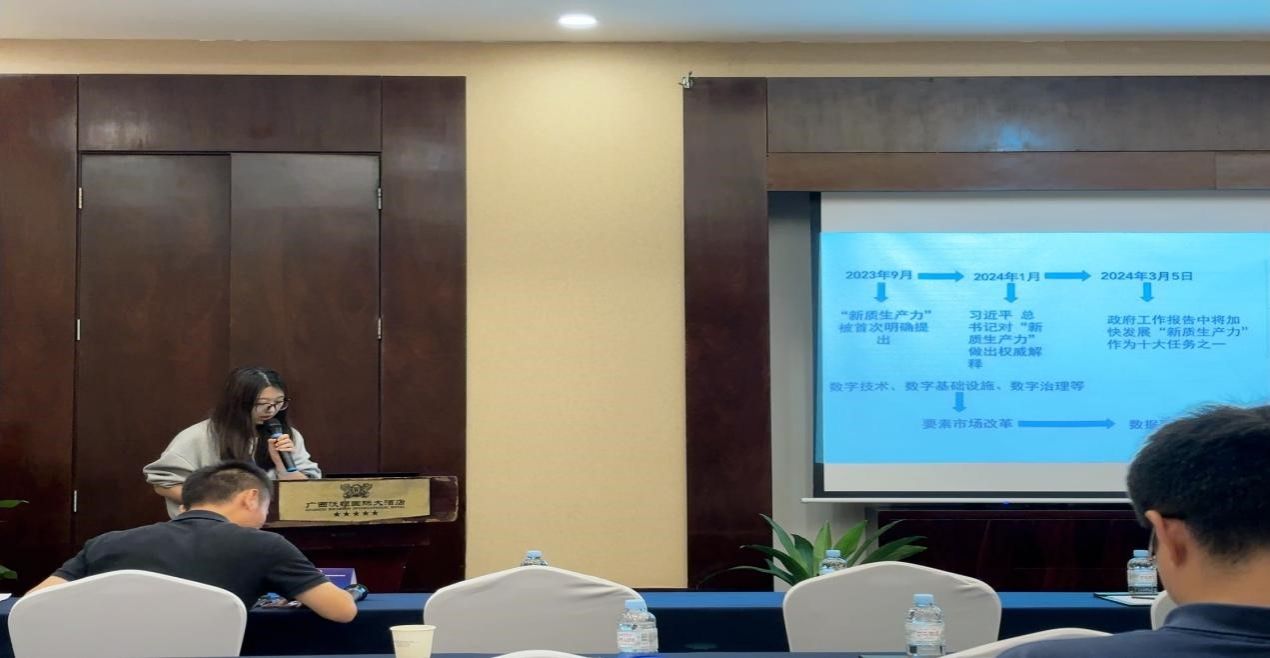 刘姿君同学作了题为《数字经济赋能区域新质生产力发展:理论分析与实证检验》的专题报告。该报告基于2012-2022年中国省级面板数据,通过构建数字经济发展指数和新质生产力指数实证检验数字经济对区域新质生产力的影响,分析了数字经济对新质生产力的门槛效应。