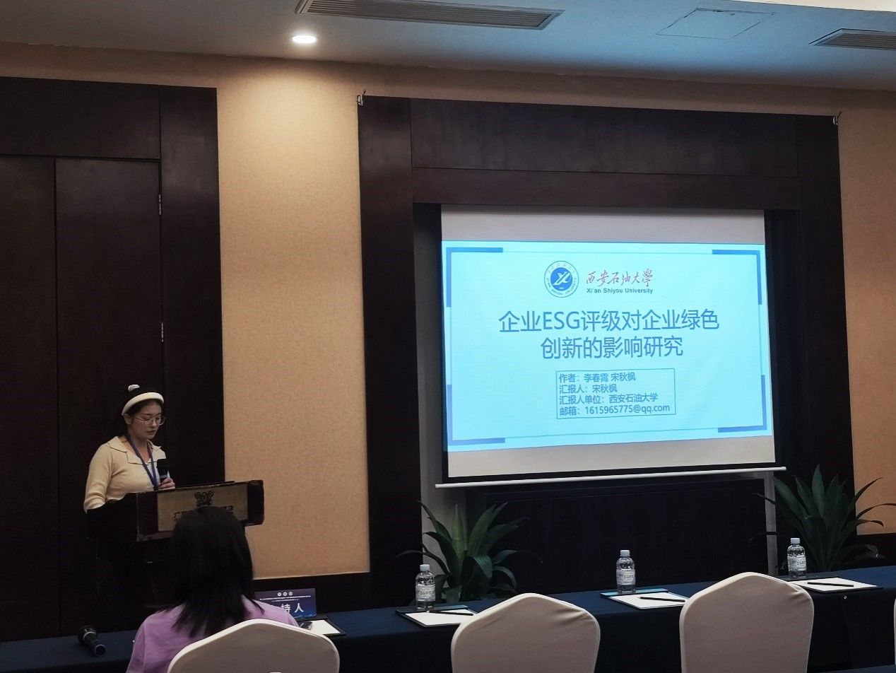 宋秋枫同学作了题为《ESG评级对企业绿色创新的影响研究》的专题报告。该报告基于商道融绿发布的ESG评级数据,采用多时点双重差分法,实证分析了ESG评级对企业绿色创新的影响。