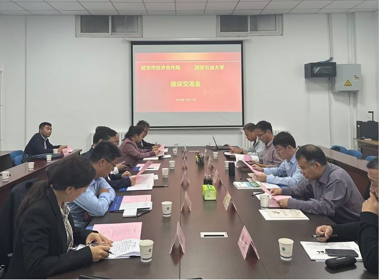 10月17日下午,延安市经济合作局党组书记、局长杨东一行来校开展科研成果转化座谈交流。会议在雁塔校区分析测试中心二楼231会议室举行。化学化工学院党委书记高小明出席会议,会议由科研处副处长焦龙主持。