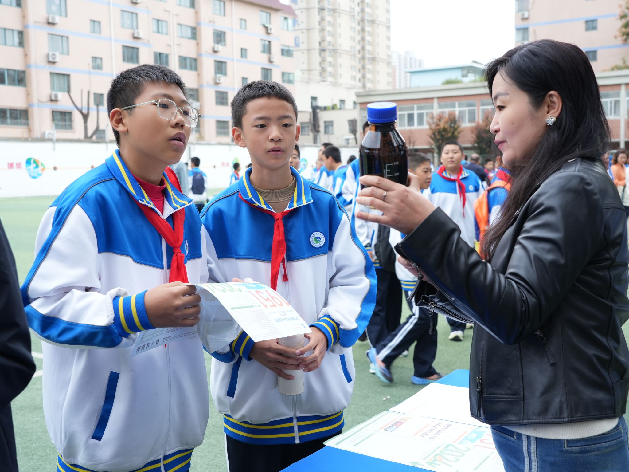 活动现场,老师正在向同学们讲解原油样品