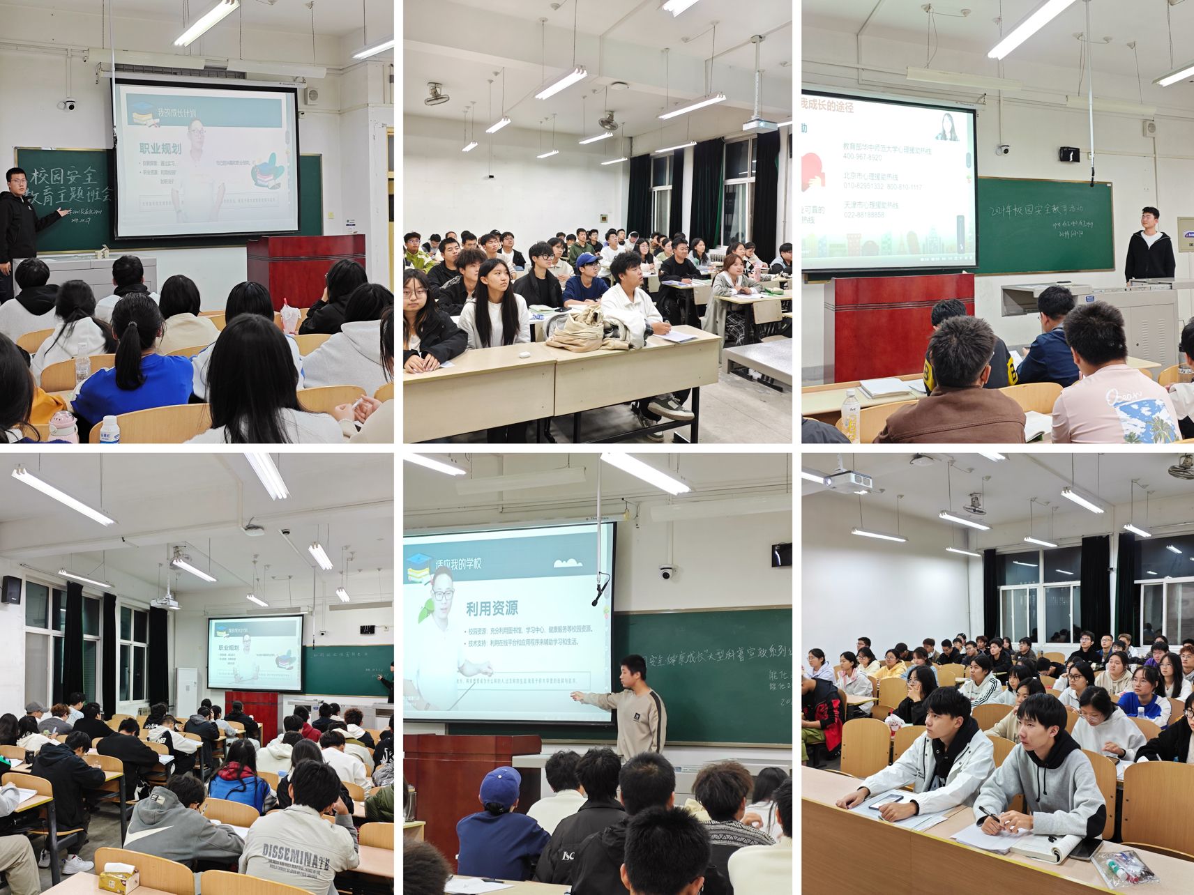 活动中,全体新生通过主题班会及晚自习形式学习了“校园安全·健康成长”大型科普宣教系列公益课堂,包含了《如何适应校园新生活》《大学生心理健康维护》《大学生生涯规划讲座》《防溺水安全教育课》《关注校园安全 学习安全技能》《交通安全必修课》《防范于未燃》《守护钱袋子》等8个专题。视频里专业人士的详细讲解,深入浅出地分析了校园安全事故发生的原因,并且传授了实用的预防方法和应对技巧,如消防器材的正确使用、交通规则的严格遵守以及在水边的注意事项等。在观看过程中,同学们全神贯注地盯着屏幕,认真学习了消防安全、交通安全、防溺水安全、防骗反诈等知识。