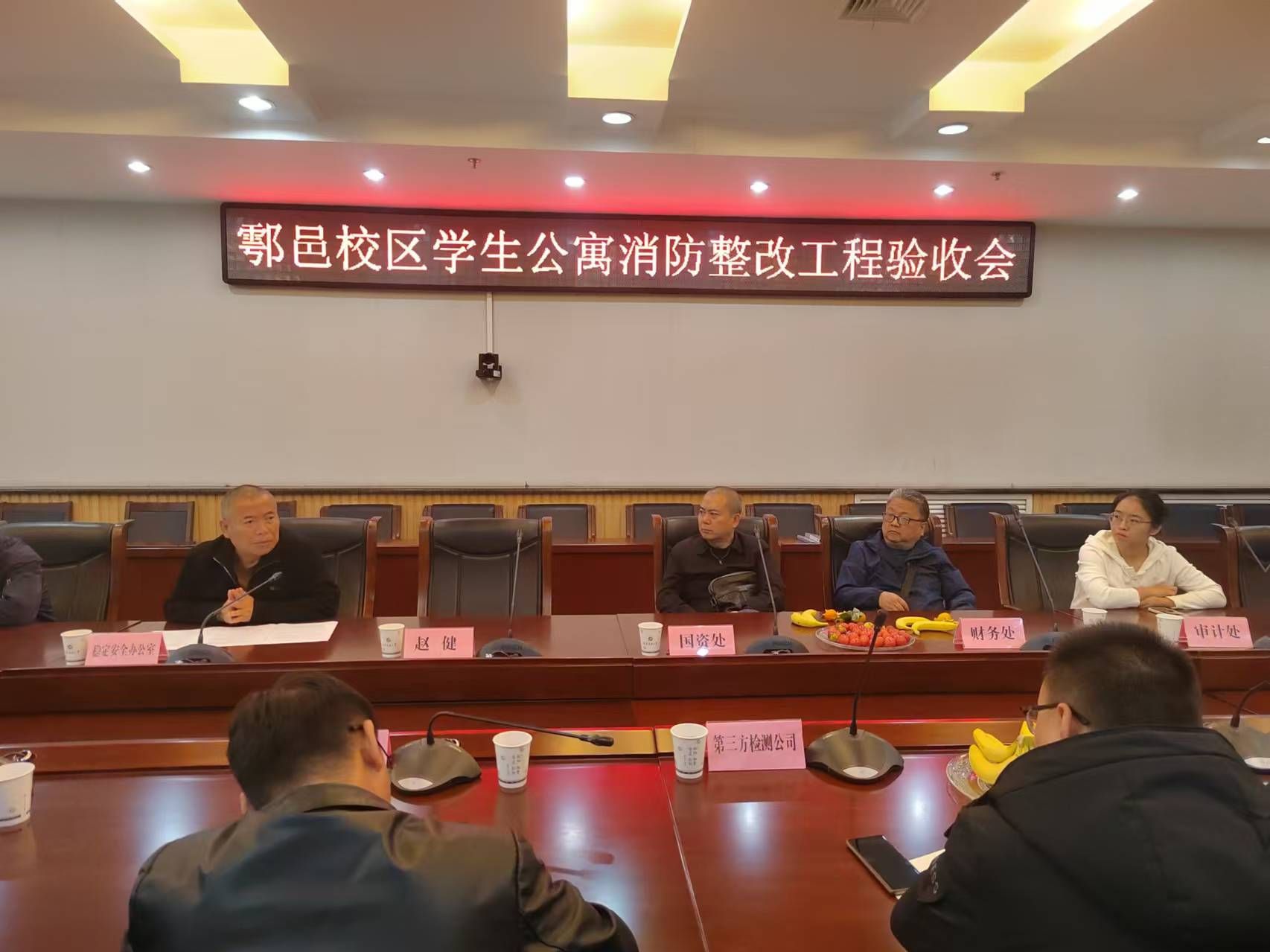杨西坤部长简要介绍了整改工程情况,三位外聘消防专家、检测公司、两家施工单位、学校相关职能部门按照图纸审核、设备检查、联动测试分组到整改现场和消防总控制室进行了实地检查。