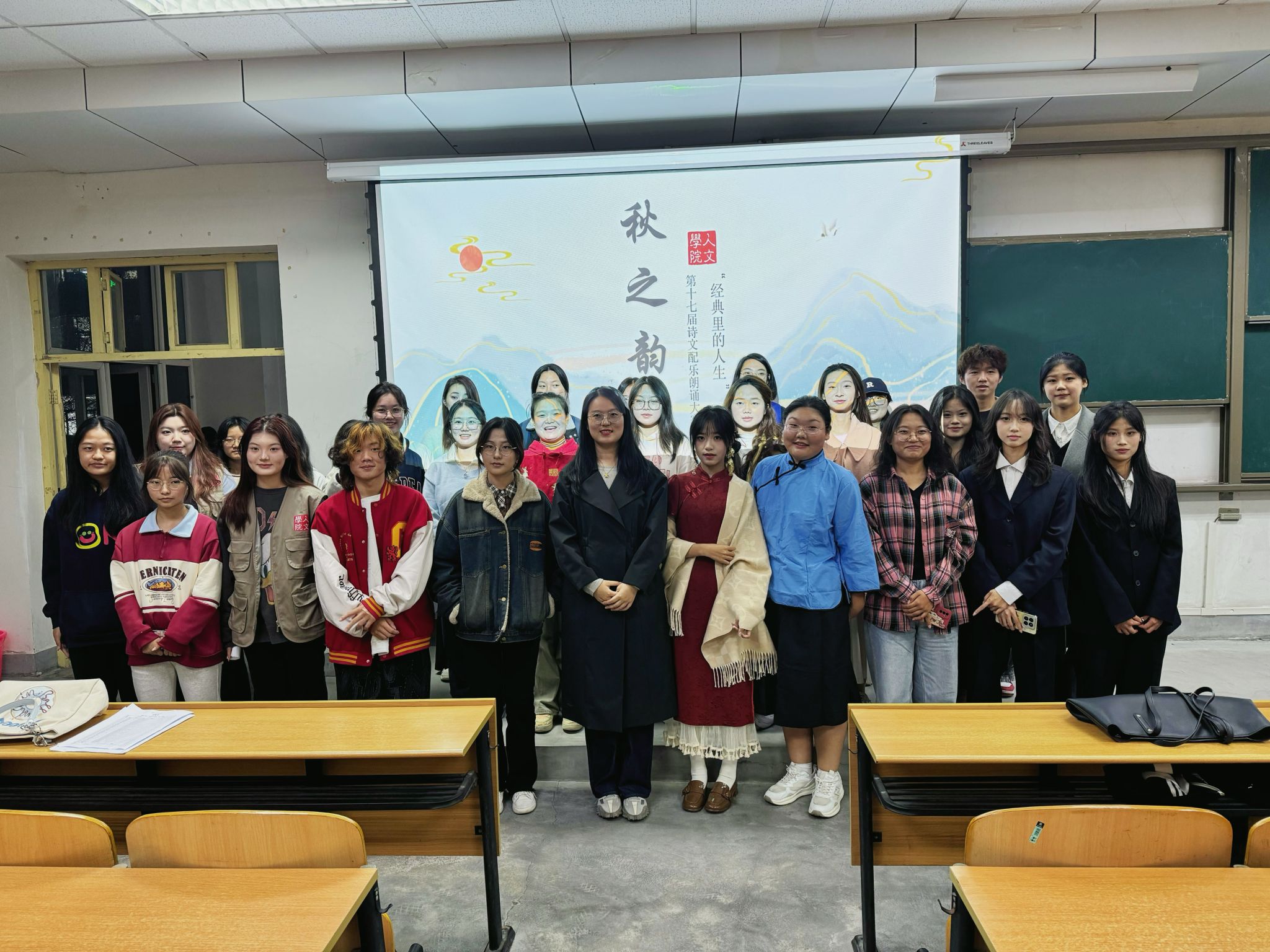 为进一步加强beat365校园美育环境建设,完善美育体系,提高学生的审美和人文素养。10月31日晚,人文学院在鄠邑校区博览楼A139教室开展了第十七届“秋之韵”诗文配乐朗诵院系初赛,2024级辅导员樊煜及全体学生参加此次活动。