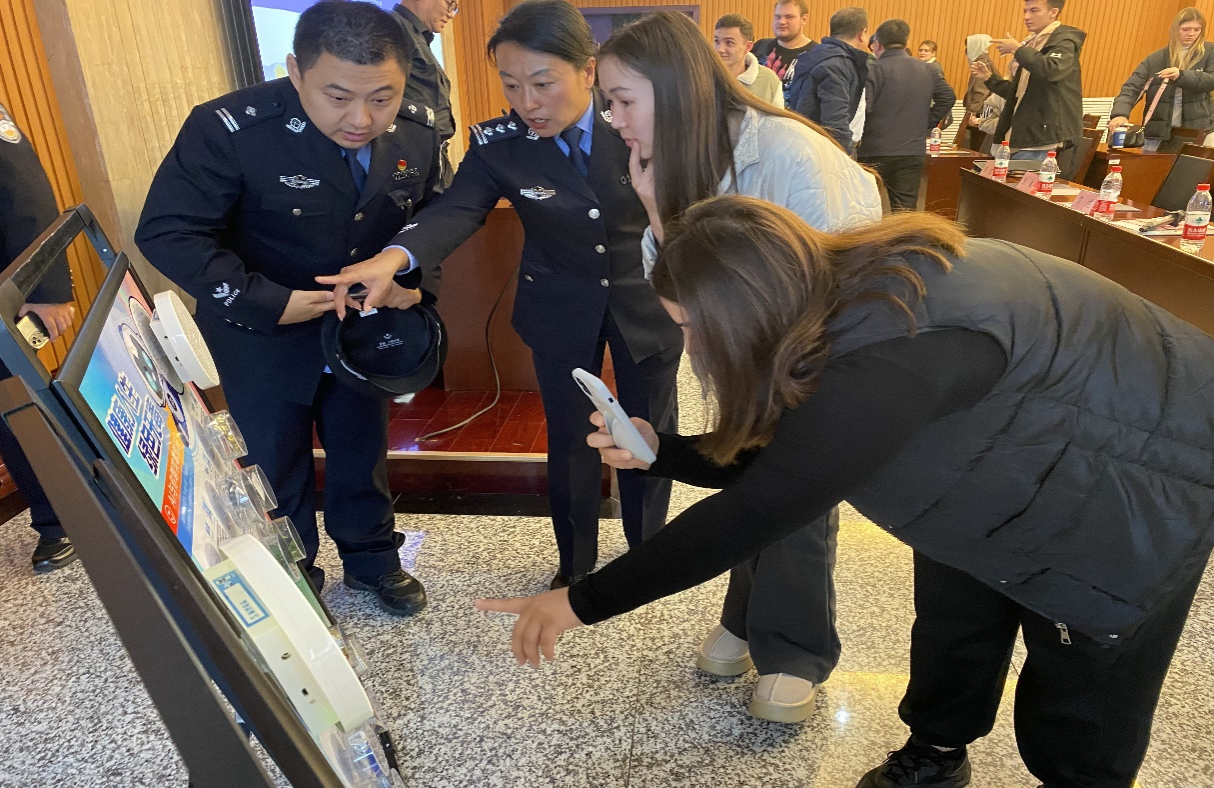 李敦警官详细讲解了宗教管理及互联网使用的相关法律规定。李慧中警官向国际学生详细介绍了签证申请、居留许可办理、外国人临时住宿登记和出入境注意事项等内容。张杨警官重点介绍了禁毒相关法律法规,讲解毒品成瘾原理、生理心理危害性,提醒学生时刻保持警惕,远离毒品。席擘警官针对国际学生在日常生活中可能遇到的治安、交通和住宿等法律问题进行了详细介绍,提供了实用的法律建议和求助途径。