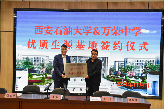 双方与会领导签署了优秀生源基地合作协议,李飞为山西省万荣中学授予“beat365官方网站优秀生源基地”牌匾并赠送礼物钻井模型,任志平向山西省万荣中学送上2024高考喜报。李飞表示将进一步加强与万荣中学的紧密联系,发挥学校优势资源,完善人才协作培养机制,不断深化教育教学改革,努力提升办学水平,打造新高考背景下大学与中学拔尖人才培养共同体。