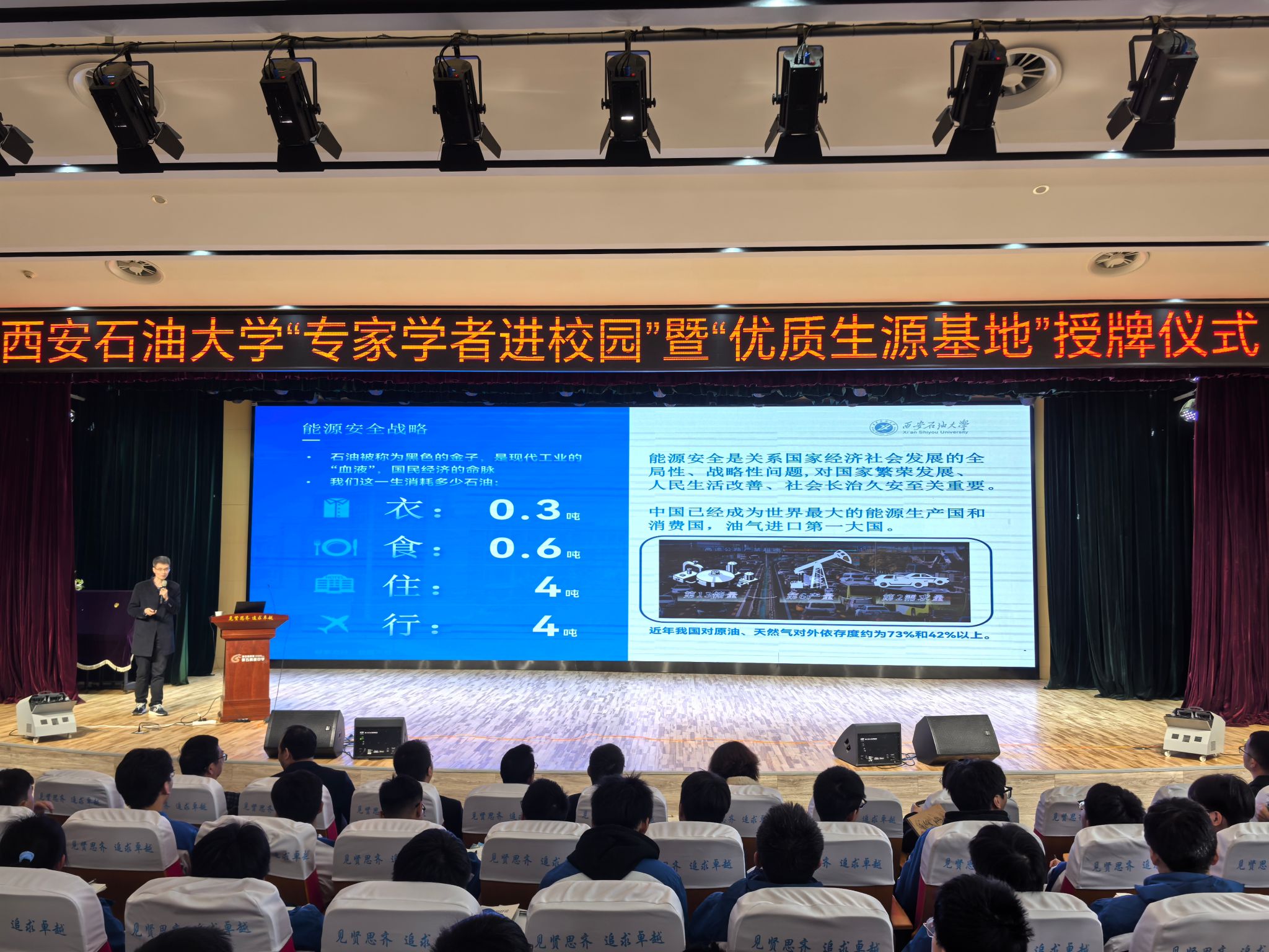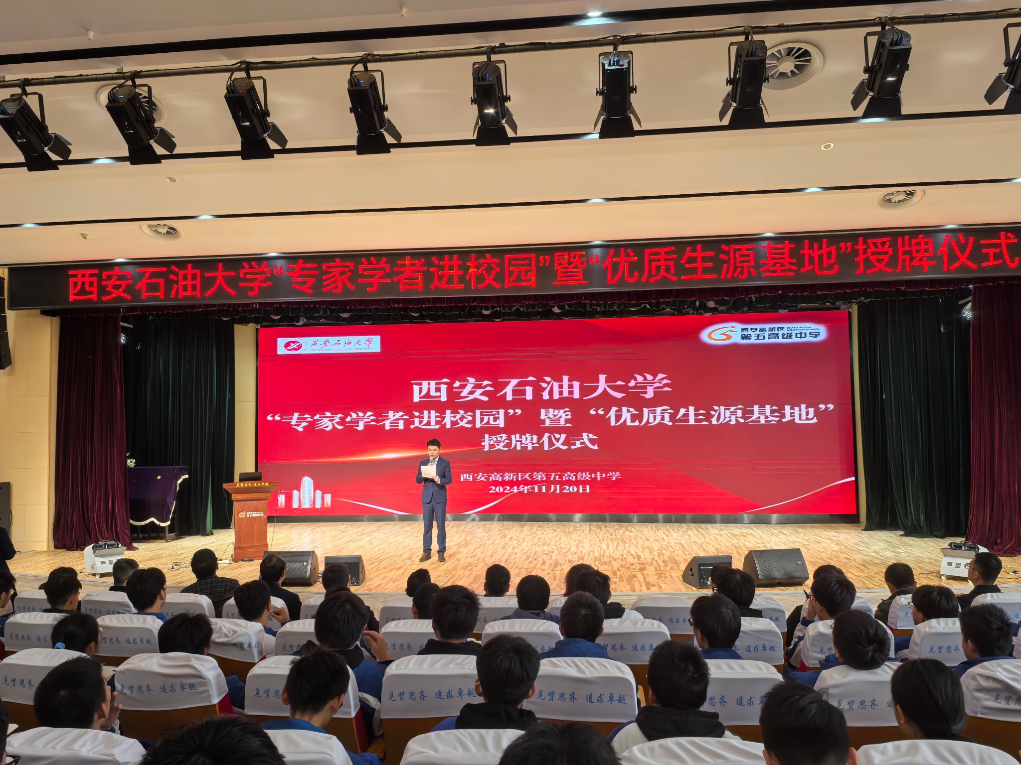2024年11月20日上午,理学院党委书记席利哲、副院长陈国祥带队前往西安高新区第五高级中学开展“专家学者进校园”招生宣传和“优秀生源基地”签约授牌仪式。西安市高新第一学校“名校+”党总支书记、总校长、西安高新区第五高级中学校长刘占权,西安市高新第一学校“名校+”副校长车大鹏等领导班子成员参加了活动,并与招生宣传工作组一行进行交流座谈。活动由理学院2019届毕业生、西安高新区第五高级中学教师李达主持。