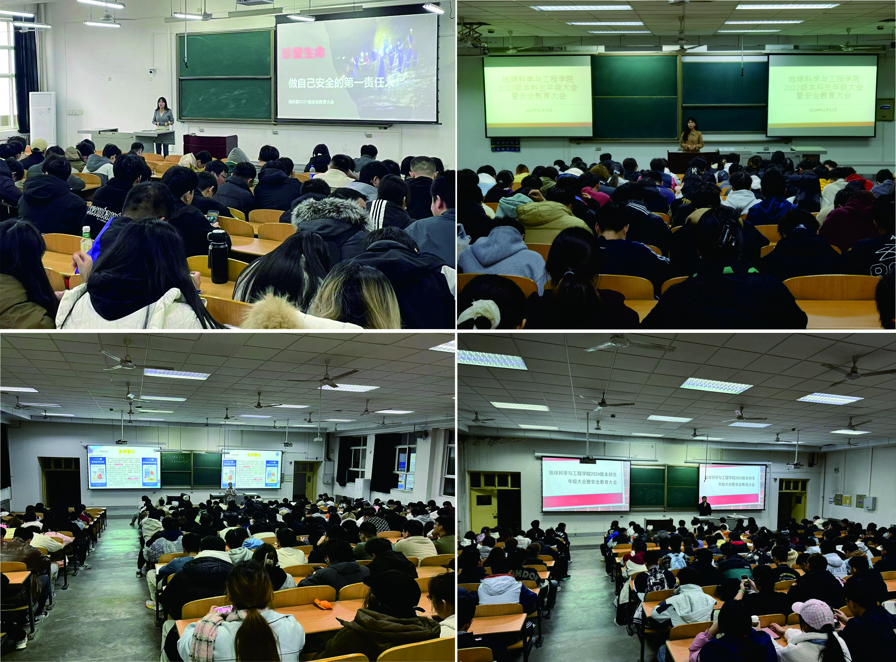为切实做好近期安全稳定工作,提高学生安全防范意识,11月21至25日,地球科学与工程学院各年级在鄠邑校区A134、A234等教室分别召开安全教育大会,会议由各年级辅导员主持,全体学生参加。