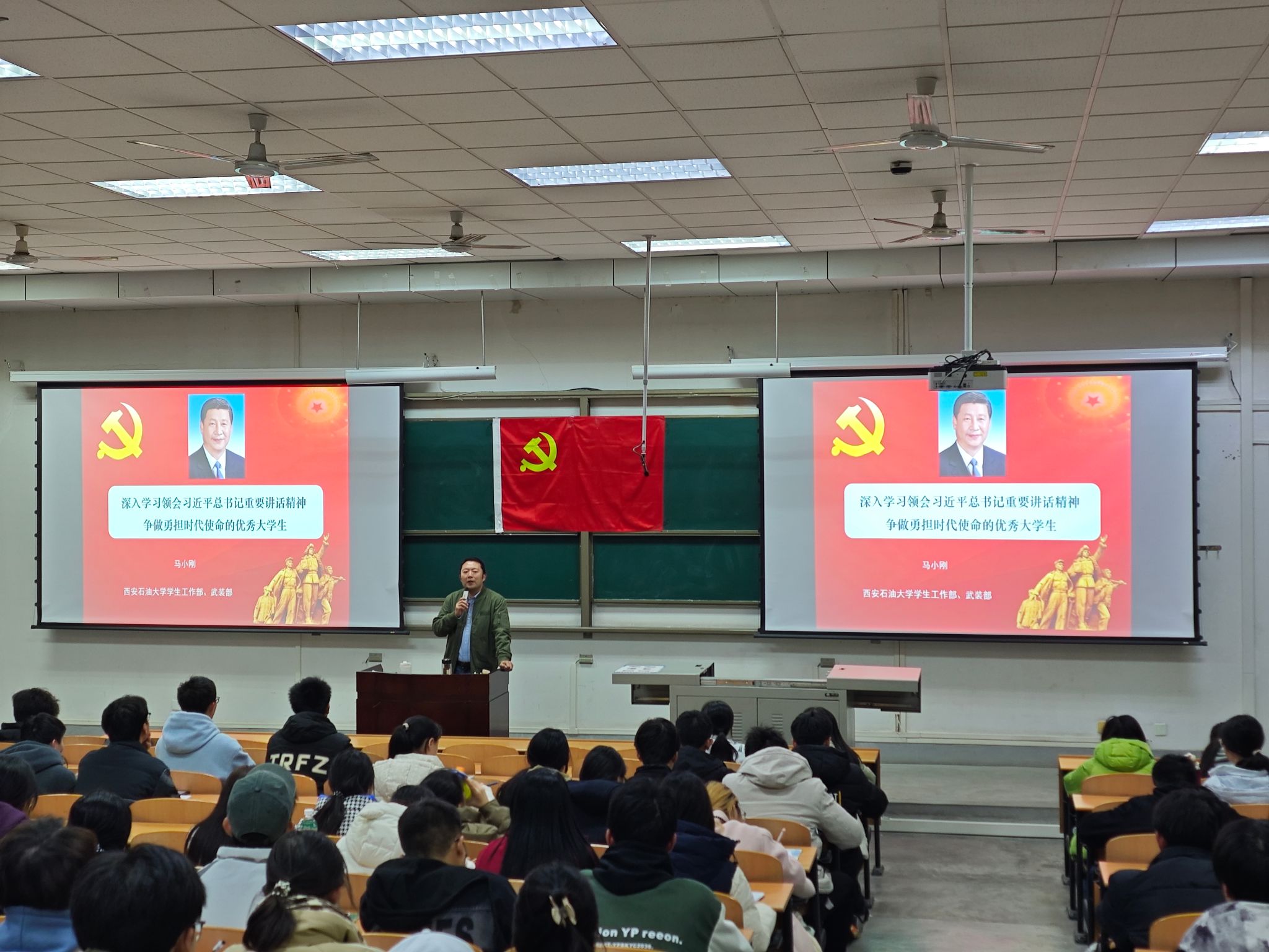为加强入党积极分子的培养教育,提高入党积极分子的政治素质和理论水平,11月26日晚,理学院、马克思主义学院、体育学院在鄠邑校区博览楼239教室联合举办了第十九期入党积极分子培训班第五讲。学生工作部、武装部副部长马小刚以《深入学习习近平总书记重要讲话精神 争做勇担时代使命的优秀大学生》为题应邀担任主讲。237名入党积极分子参加了学习。