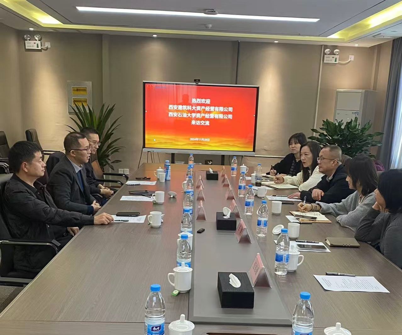 为落实学校第三次党代会决策部署,进一步提升学校资产经营管理水平,强化兄弟院校之间交流合作,11月28日下午,beat365资产经营公司总经理王晓会同西安建筑科大资产经营有限公司总经理符国力一行到访陕西西安电子科大资产经营有限公司开展现场调研。陕西西安电子科大资产经营有限公司董事长李鹏,总经理云霄,副总经理、西安壹玖叁壹学术交流服务有限公司总经理陈世兵全程陪同。