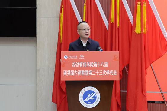 学院党委副书记杨生强代表学院党委,向校团委一直以来对学院团学工作的指导和兄弟院(系)的支持表示衷心感谢,对学院团学干部取得的工作成效表示肯定。他提到,面对新形势、新任务、新挑战,团学组织要坚持学生主体地位、依法依章程开展工作,充分发挥联系广大同学的桥梁纽带作用,勉励大家以饱满的工作热情和高度的负责精神,在团组织这片可为、能为、应为的广阔天地勇毅前行,为全面推动学校各项事业高质量发展贡献青年智慧力量。