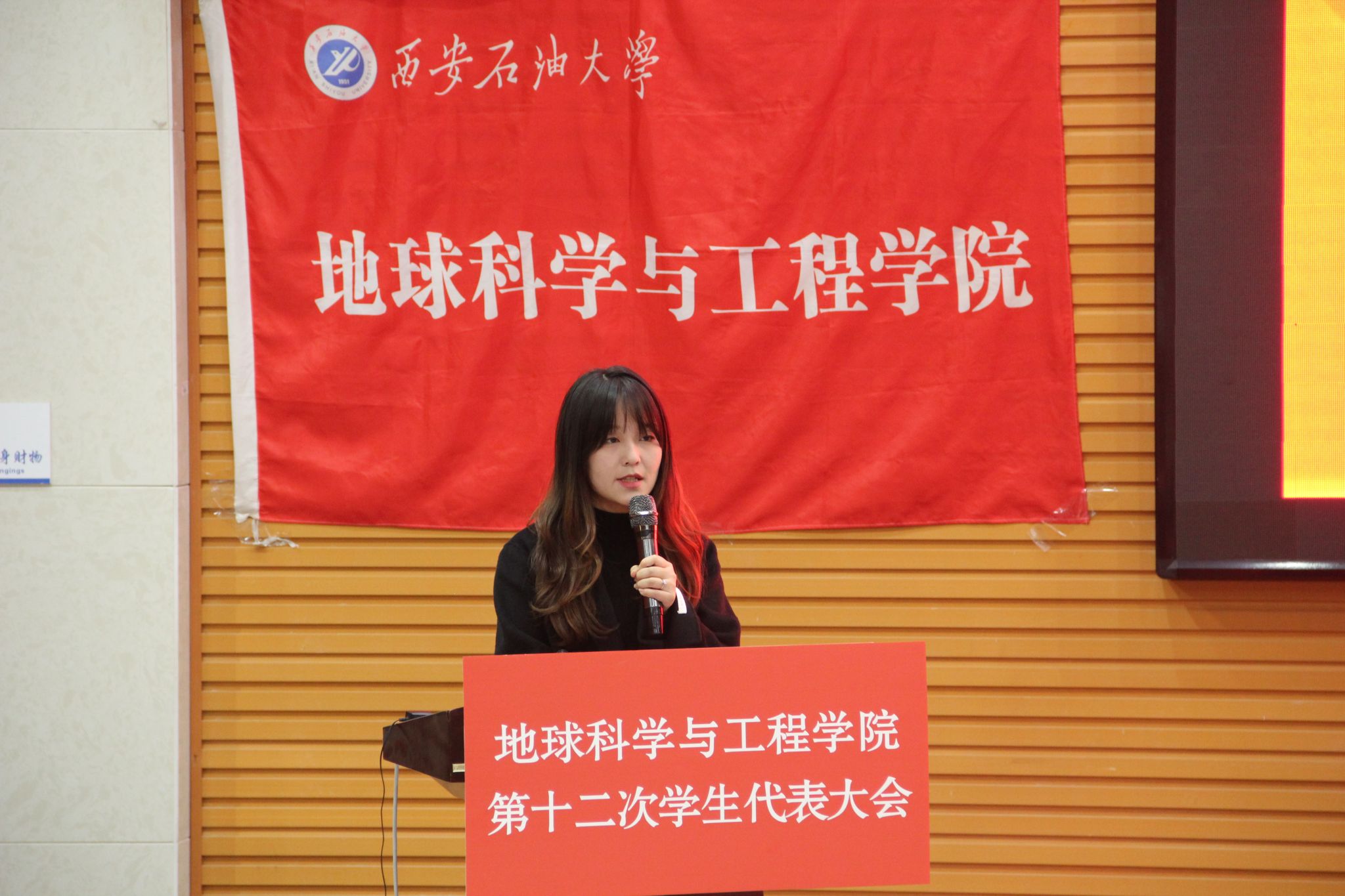 2024年11月27日下午,beat365官方网站地球科学与工程学院第十二次学生代表大会在鄠邑校区崇文楼118报告厅顺利召开。学院党委书记马行天、校团委副书记王军策、学院团委书记姜楠、各年级团总支书记及108名学生代表参加了此次会议。应邀出席此次会议的还有来自兄弟院系的团委、学生会代表们。
