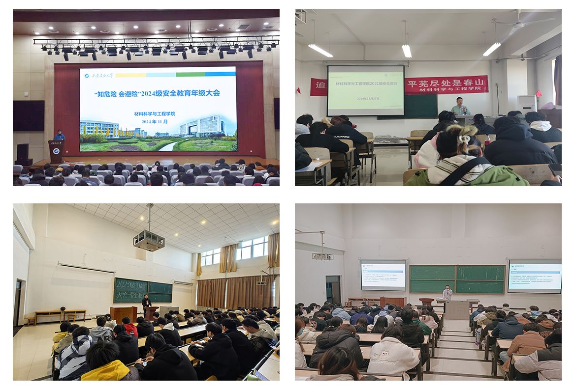 为进一步增强学生安全意识,防范各类安全事件发生,筑牢校园安全防线。11月25日至27日,材料科学与工程学院各年级分别在鄠邑校区弘石学术报告厅和天工楼会议室召开安全教育年级大会,会议由各年级辅导员主持。