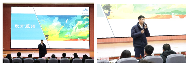 经济管理学院学生办公室主任李博文致开幕式致辞,他表示,班级文化作为学院文化的重要组成部分,不仅是学生精神风貌的集中体现,更是培养学生团队协作能力、社会责任感及创新精神的重要载体。一个富有活力的班级文化能够激发学生的内在潜能,促进班级内部的和谐与团结,为学院的整体发展注入新的活力。他强调,班级文化建设对学生成长和学院发展具有重要意义,鼓励同学们通过此次大赛展现班级风采。