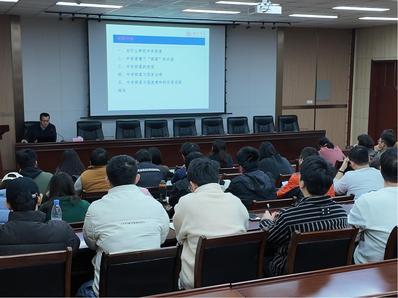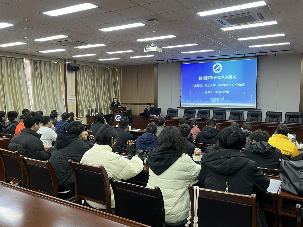 12月4日上午,区域国别研究院邀请西北大学韩志斌教授在雁塔校区会议中心第五会议室作了题为《中东部落:概念认知、类型演化与社会治理》的学术讲座。讲座由区域国别研究院执行院长刘辉主持,研究院专兼职研究人员及工程技术与管理人员国际化能力培训班学员共同聆听了报告。