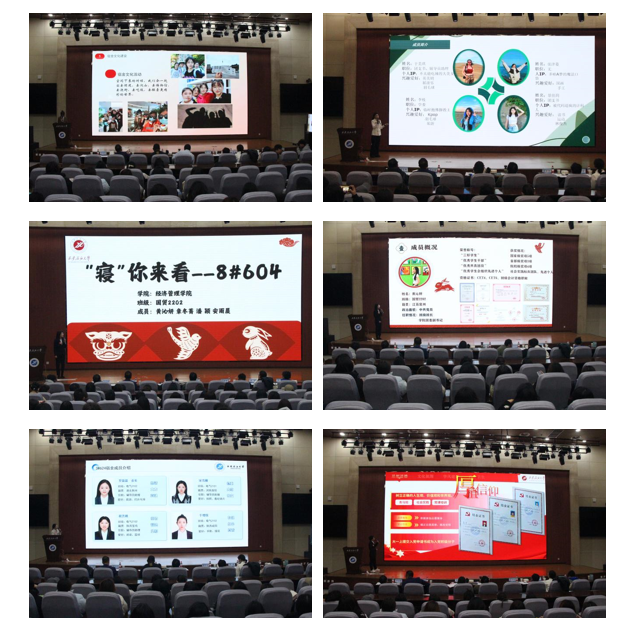 经过前期院(系)推荐、学校复核,共有20间本科生宿舍被评为“标兵宿舍”,同时也进入到本次“最美宿舍”的评审汇报环节。各汇报宿舍结合PPT、视频剪辑等形式从宿舍温馨得体的布置,清静舒适的环境、健康文明的生活方式、积极向上的精神风貌以及生动活泼的文化活动等方面进行了详细的介绍,生动的分享了宿舍奋斗青春点滴故事,共同向大家展示了寝室整体的思想政治建设、优良学风建设、寝室文明建设、志愿服务建设和寝室愿景规划。