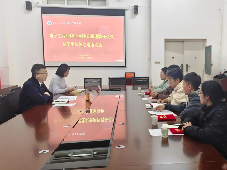 12月6日下午,电子工程学院学生院长助理聘任仪式暨学生院长助理座谈会在鄠邑校区行知楼321举行。电子工程学院院长李飞及新聘任学生院长助理参加,仪式由2024级辅导员沈轩羽主持。