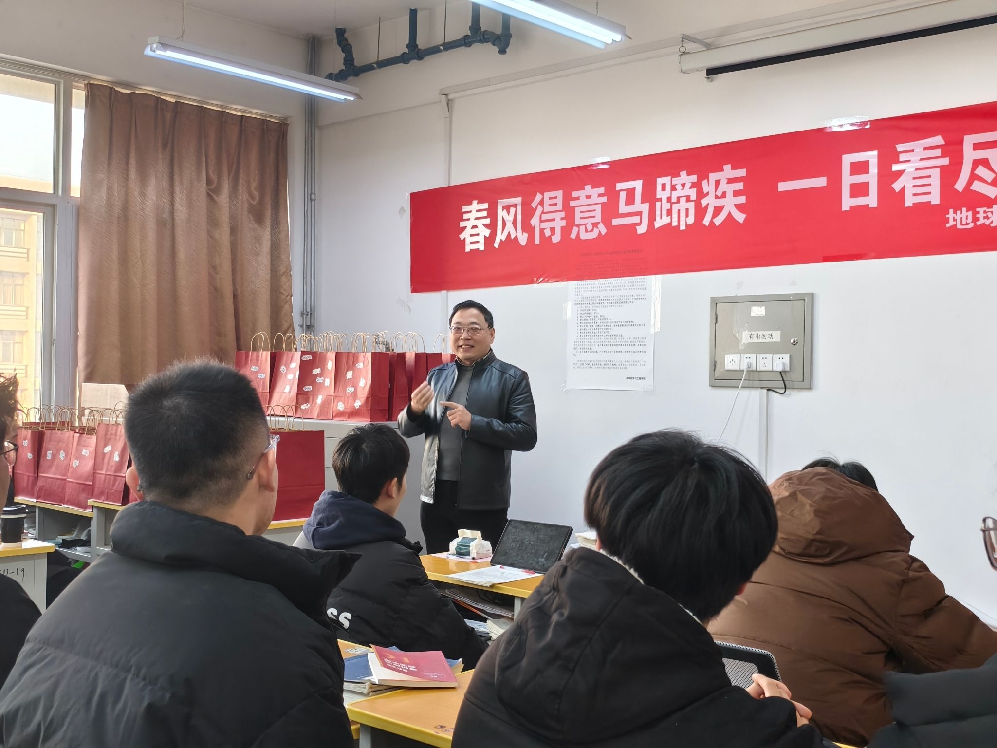 在2025年全国硕士研究生招生考试到来之际,为帮助考研学生坚定考研信心,缓解备考压力,激发前进动力,学院党委书记马行天、2021级辅导员李佩琦于2024年12月16日携暖心考研大礼包走访考研自习室,慰问考研学子。