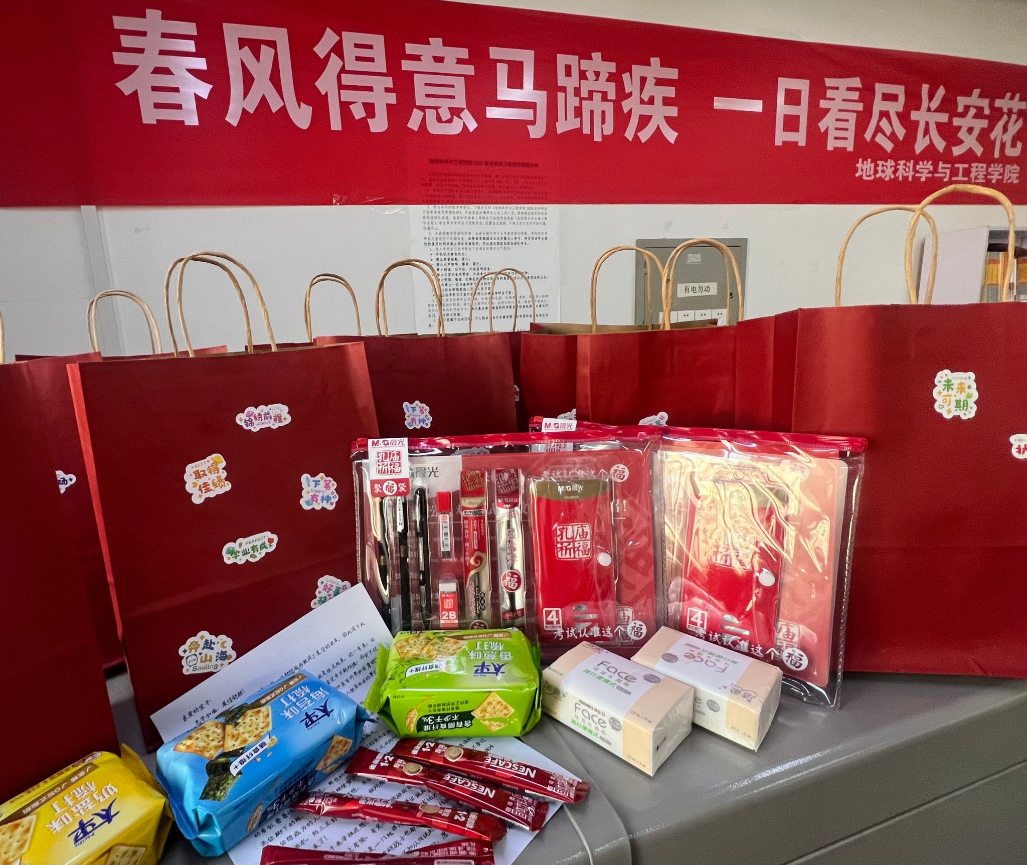 在走访过程中,马书记亲切询问了考研学子的备考情况,关心学生身体及心理状况,叮嘱同学们在最后冲刺阶段一定要调整心态,劳逸结合,用坚定的信心和从容的态度迎接考试,学院始终在背后支持每一位考研学子。辅导员李佩琦老师为每一位考研学子准备了一封信,希望所有日月兼程逐梦而上的学子,能够不负努力,不畏考验,让理想的风吹进现实,让沉淀的知识散作星光,照亮脚下的路。同学们纷纷表示会牢记叮嘱,不负期望,坚持到底,用最好的状态迎接考试,全力以赴向梦想冲刺!