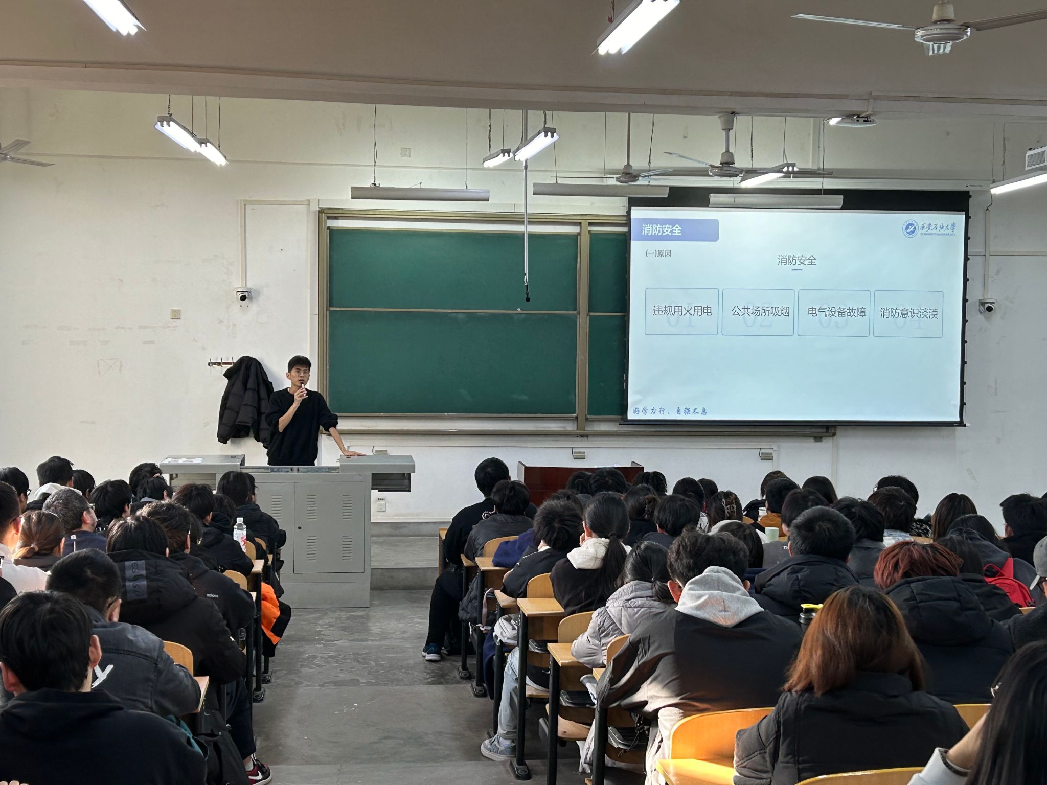 在安全教育系列主题年级会上,各年级辅导员结合当前的安全形势和学院实际情况,从校规校纪、心理健康、出行安全、网络安全、交通安全、宿舍安全、消防安全等多个方面进行了详细讲解。辅导员们通过生动的案例和触目惊心的场景,让学生们深刻认识到安全问题的严峻性和紧迫性,增强了他们的安全意识和防范能力。