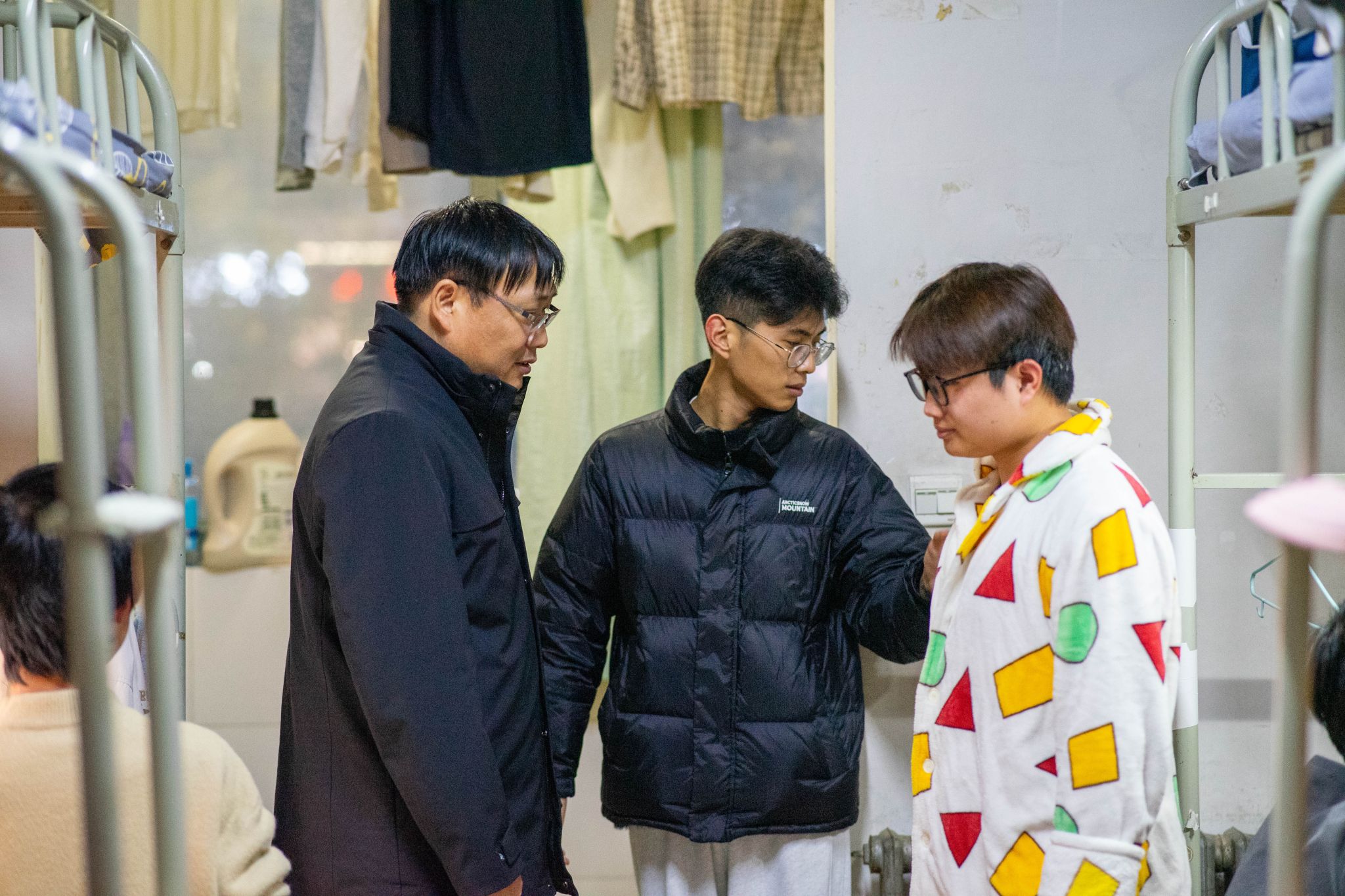 11月25日,理学院副书记杨富民、2022级以及2023级辅导员李猛共同走访了学院学生宿舍,与学生面对面交流,了解他们的生活和学习情况,并重点检查了宿舍的安全隐患。杨富民强调了宿舍安全的重要性,提醒学生们要时刻保持警惕,注意用电安全、防火防盗等。同时,他还鼓励学生们要相互关心、相互帮助,共同维护宿舍的安全和稳定。