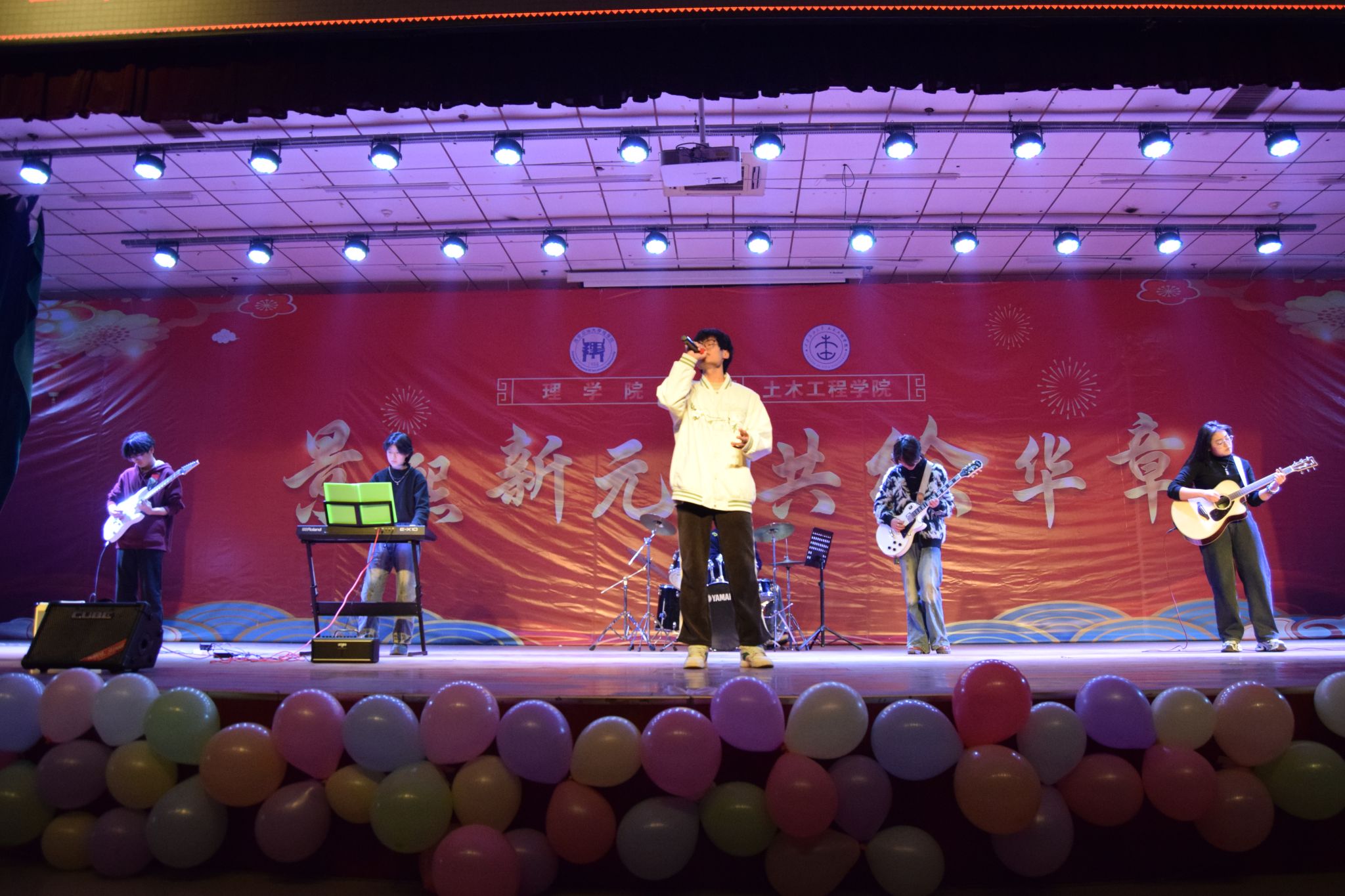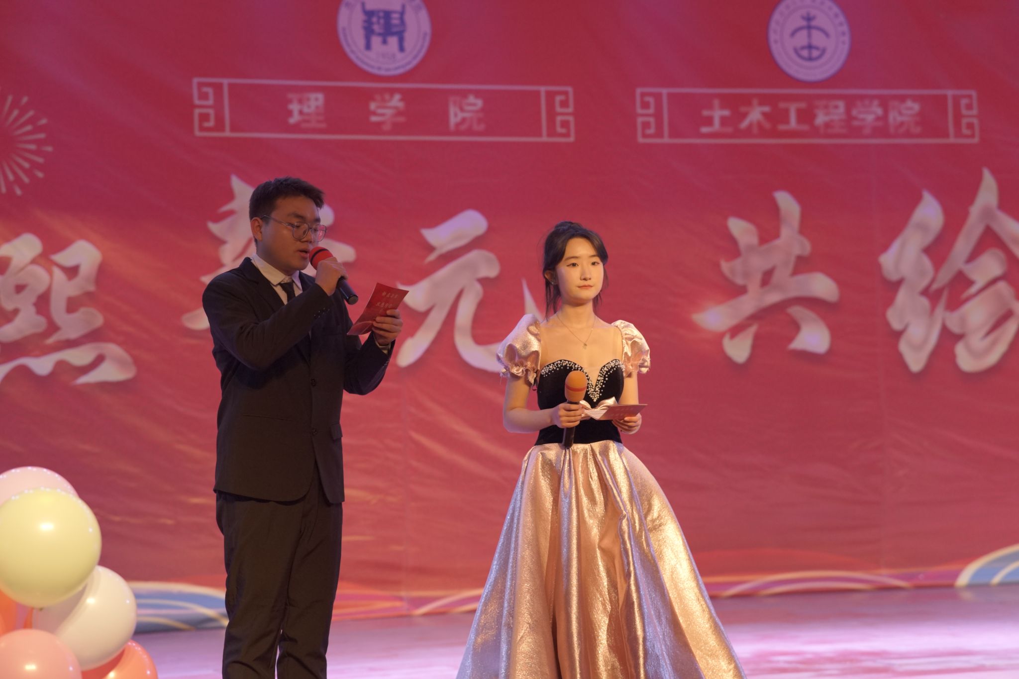 本场晚会分为“燃梦新生”“涌动青春”两个篇章。理学院辅导员李猛弹奏的《琵琶语》作为开场,街舞《whiplash》以动感的节奏和炫酷的舞姿赢得了观众的阵阵掌声,歌曲《于是》《My heart will go on》《就是爱你》深情而富有感染力,小品《非礼勿扰》幽默诙谐,小品《时间都去哪儿了》唤起了大家对日常学习生活时间的珍惜与回忆,敦煌舞、新疆舞和拉丁舞的《舞蹈串烧》将现场气氛推向高潮,展现了同学们青春的活力与激情。进入下篇,歌曲《你还要我怎样》《如果有来生》《走在冷风中》《Jar of love》以深情的歌声打动了每一个同学的心,《穿越古今,衣袂飘飘》通过精彩的走秀展示了古今服饰的演变与魅力,话剧《黑天鹅王子和七个黄金矿工》创意独特笑料不断,现代舞《New dance》再次点燃了现场的热情,土木工程学院辅导员张曼带来的钢琴独奏《这世界那么多人》琴声优美,传递着爱与希望。最后,Flipped!乐队一首《花海》以欢快的旋律和精彩的表演为晚会画上了完美的句号。晚会还穿插了激动人心的抽奖环节,9名幸运观众获得“幸运大礼包”。