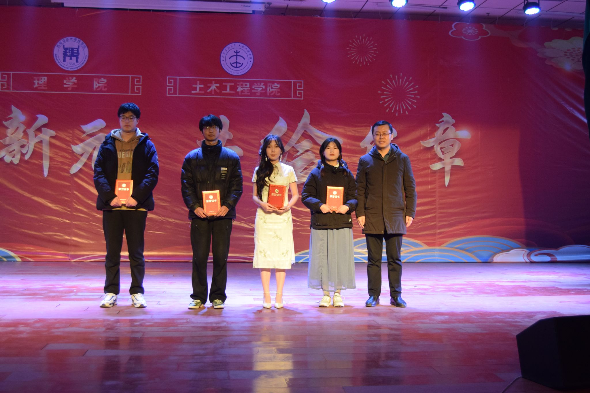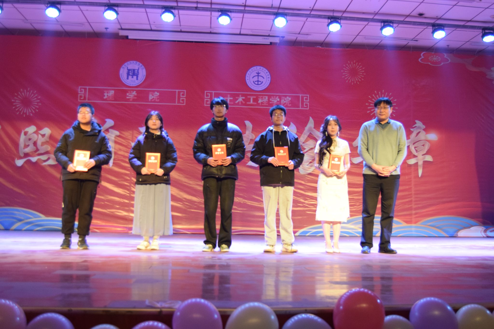 理学院党委副书记杨富民宣读了《理学院、土木工程学院关于表彰2024年度学生先进个人的决定》,希望受表彰的同学珍惜荣誉、再接再厉,充分发挥榜样标杆的示范引领作用,踔厉奋发、勇毅前行。与会嘉宾为获奖同学颁奖。