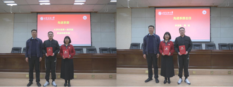 为激励教师积极投身教育事业,不断提升教学科研质量和管理水平,外国语学院于12月27日在雁塔校区会议中心第三会议室召开2024年度外国语学院先进教师及集体表彰会。学院全体党政领导班子及全体教职工参加。会议由学院党委书记张建高主持。