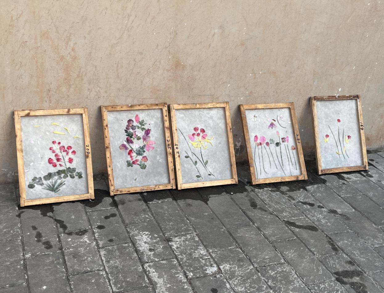蔡侯纸博物馆内,留学生们认真听取讲解员对蔡伦造纸术的历史背景和发展历程的介绍,详细了解古法造纸的三十六道大工序和七十二道小工序,跟随非物质文化遗产实践老师体验造纸全过程,动手操作浸泡、蒸煮、捣浆等关键步骤。同学们对本次活动表现出极大兴趣,充分发挥想象力,制作出了极具艺术创意的 “太阳纸”,切身感受到了造纸文化的独特魅力。
