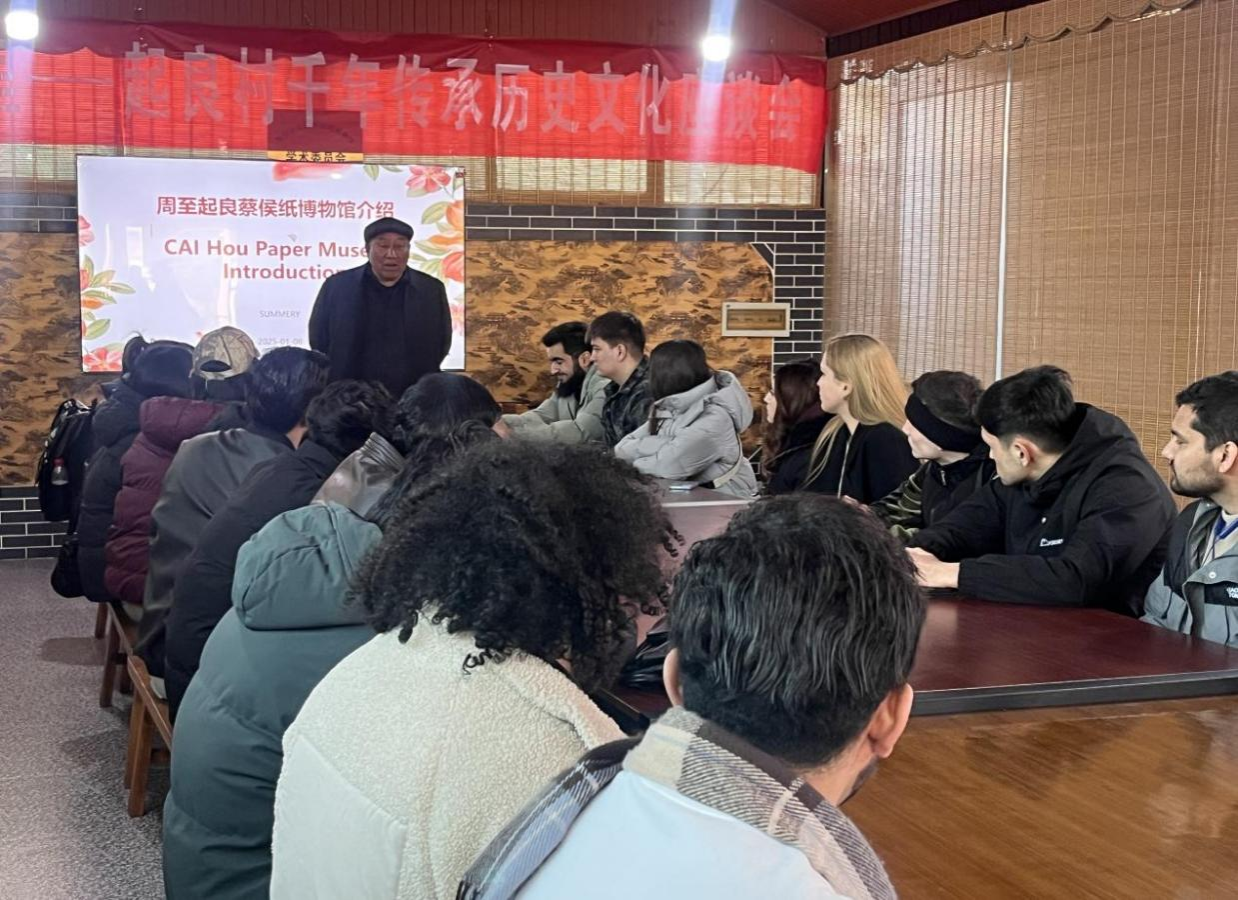 1月8日下午,国际教育学院举办走进周至“蔡侯纸博物馆”国情实践教育活动。此次活动以“起良寻纸,古法造纸探秘”为主题,博物馆全体工作人员,学院辅导员及留学生代表共30余人参加。