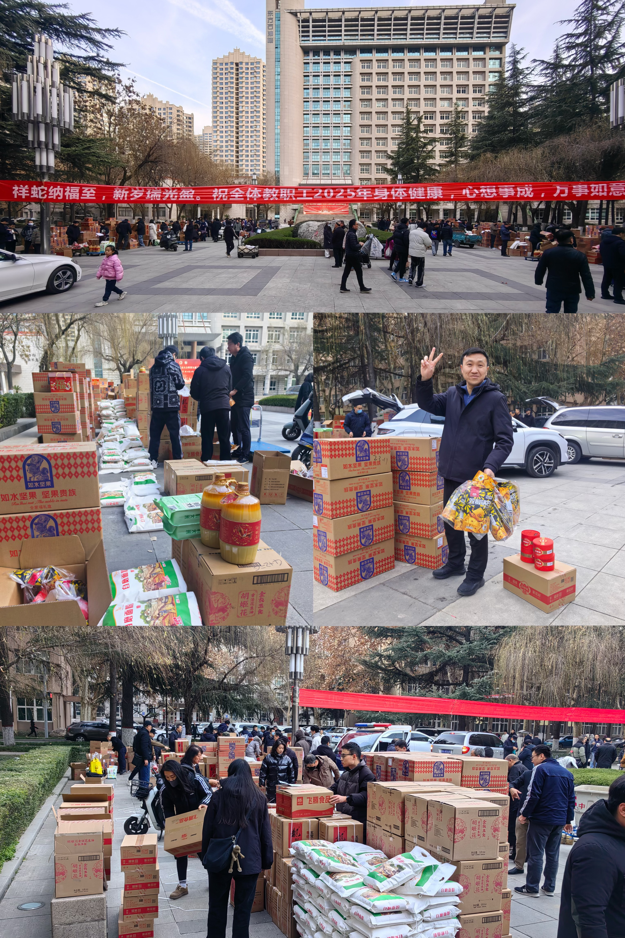 为切实贯彻刚刚闭幕的八届教代会和九届工代会会议精神,传递学校对广大教职工的深切关怀与诚挚谢意 ,助力全校教职工度过一个欢乐、祥和的寒假与春节,1 月 14 日,校工会于雁塔校区忠实广场开展了节日福利发放活动,为辛勤工作在各个岗位上的教职工们送上衷心慰问、深切关爱以及新春佳节的美好祝福。