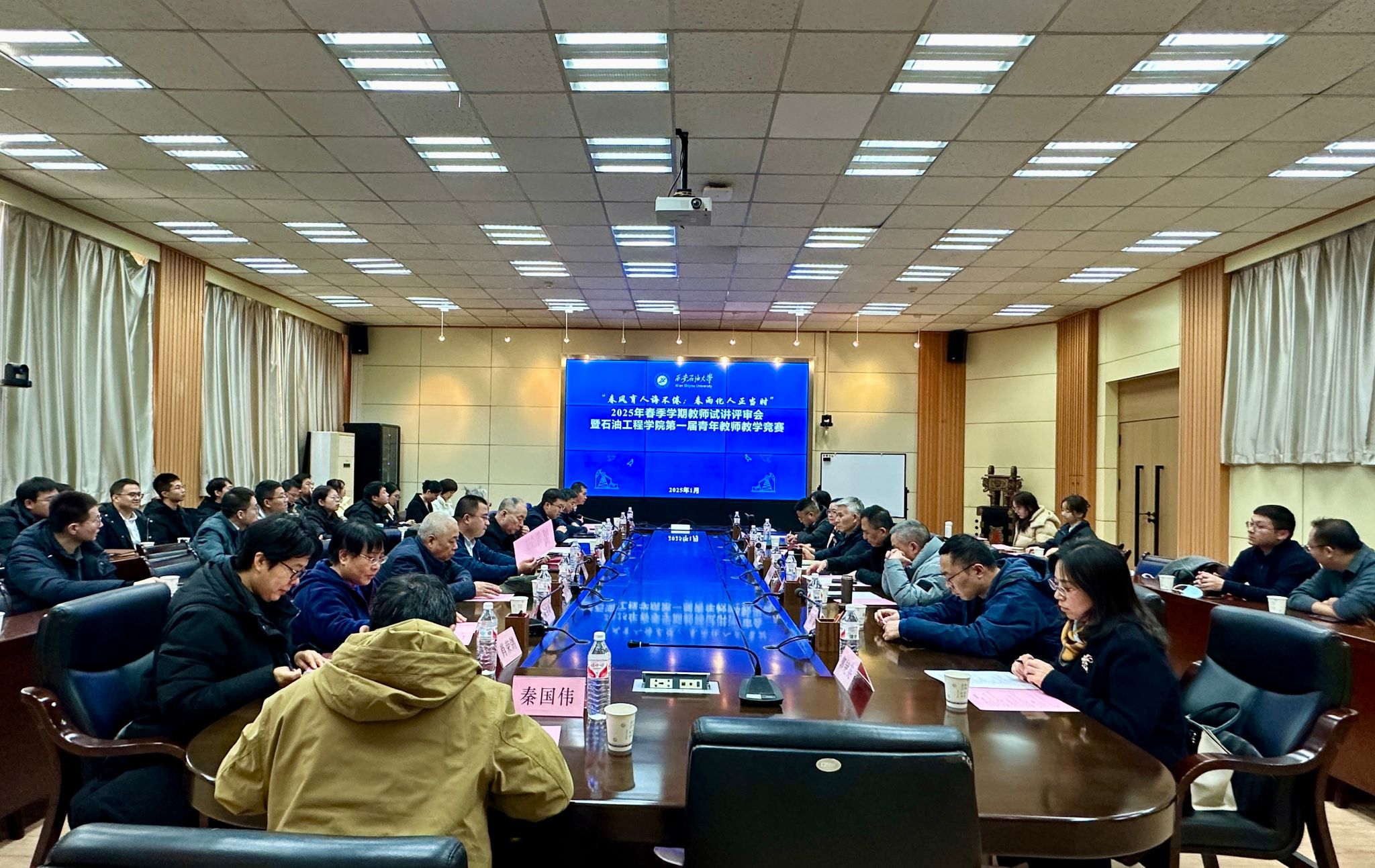 为充分调动广大教师投身教学工作的积极性、主动性和创造性,促进教师之间互相学习、互相交流,不断提高教师的教学能力和水平,1月13日下午,石油工程学院在雁塔校区会议中心举办第一届青年教师教学竞赛暨2025年春季学期教师试讲评审会。党委教师工作部部长武晓朦、教务处处长时保宏、高教研究与评估督导中心主任傅海威、马克思主义学院副院长郭艳英、石油工程学院党委书记司马文龙、院长黄海及督导专家等担任评委,活动由石油工程学院副院长王琛主持。