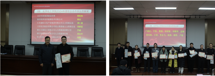 学院党委书记高小明从坚持守正创新不断提升工作亮点增量水平,强化责任担当持续推动重点工作落地落实,存在问题及2025年工作思路等三个方面对学院年度工作进行了全面总结。他指出,2024年学院在校党委的坚强领导下、在全体师生员工的共同努力下,各项工作取得了明显进步。一是学科专业建设持续推进;化学工程与技术软科排名从去年未上榜到今年跃升到前50%;实施学院提升ESI排名专项奖励办法,化学学科ESI排名进入全球前1%。二是人才培养质量持续提高;连续3年斩获化工设计大赛全国一等奖。本科生去向落实率位居全校第一。深入榆林16个中学进行本科招生宣传,学院负责区域招生数从去年198名增加到今年255名学生,增加了近30%。依托卓越工程师学院,与中石化大连院、中国环境科学院等联合培养研究生30余名。三是师资队伍结构持续优化;1人荣获“全国模范教师”称号,获批二、三级教授2人、8人晋升教授、副教授职称。主动前往天津大学、中科院过程所等单位进行博士招聘宣讲6场次,引进博士9人。四是科研创新能力持续增强;张智平教授团队首次在化学领域三大顶刊之一《德国应用化学》发表学术论文1篇。科研经费到款2916.79万元,较去年同期增长51%。现代分析检测中心顺利通过CNAS扩项认证和CMA现场认证。五是开放办学水平持续提升;带队走访中国石油大学(北京)、中科院山西煤化所、长庆石化等近20家单位开展校际、校企合作。紧盯国家7大化工园区扩大就业朋友圈,带队走访盛宏石化、恒力集团等世界500强企业开展访企拓岗专项行动。他强调,2024年度学院党委在推进工作中取得了一些成绩,但对标对表上级要求、学院实际和师生期盼,还存在一定差距。针对2025年工作,他强调,学院班子成员和全体教职工要按照学院“12331”工作计划,以学科建设(博士点申报)和队伍建设为核心,聚焦重点任务,全面改革创新,持续推动学院事业发展再上新台阶!