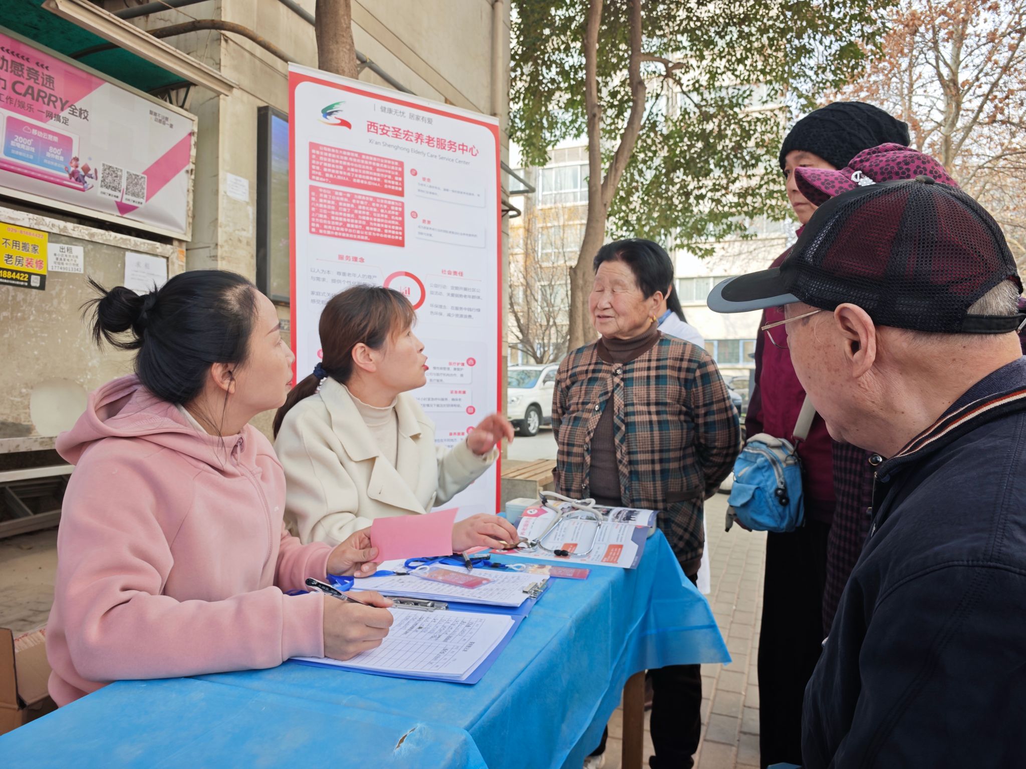 西安圣宏养老服务中心工作人员为前来咨询的师生、社区居民详细介绍了医康养结合的相关内容以及学校在医康养结合方面,为师生提供医疗、康复、养老的具体措施和服务模式。此外,工作人员还向师生和社区居民发放了健康宣传资料,普及了健康生活方式和疾病预防知识,引导师生和社区居民树立正确的健康观念。