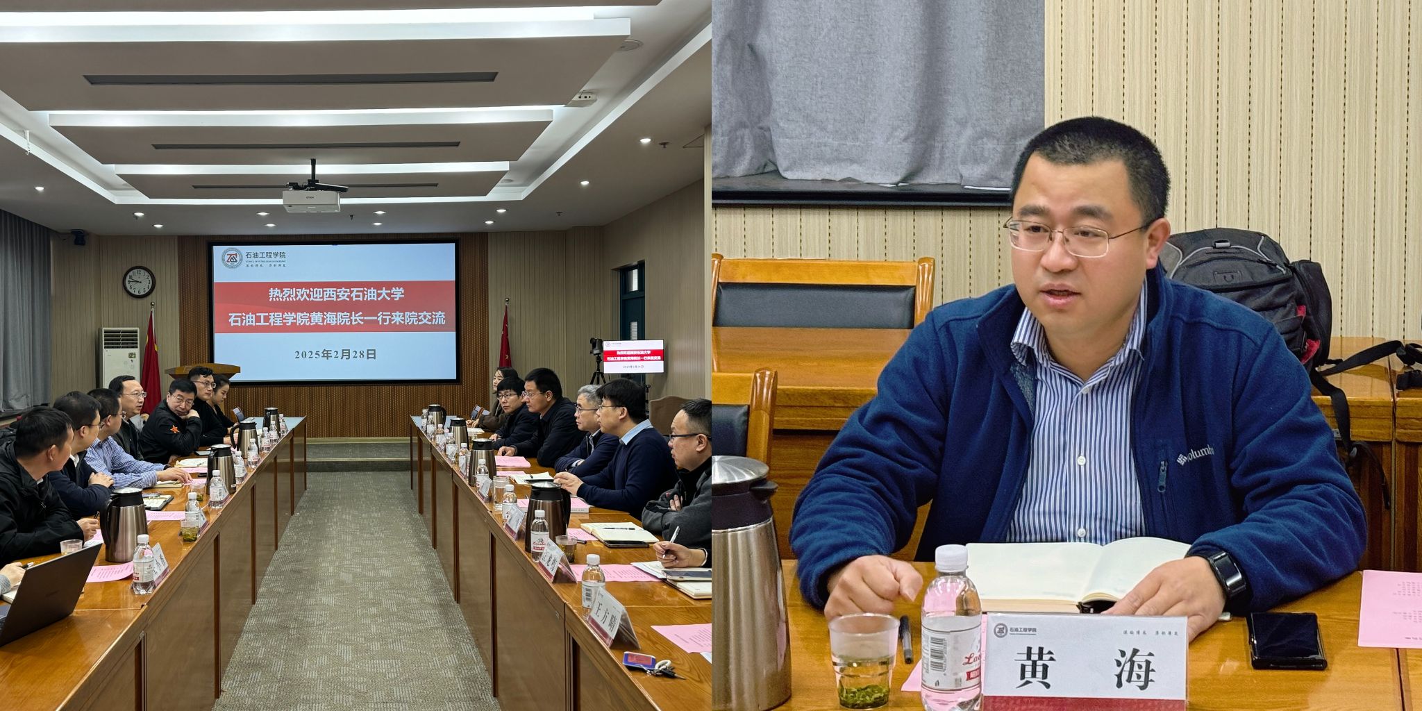 黄海对兄弟院校的热情接待表示感谢,并就我院的学科特色、人才培养成效以及未来发展思路做了简要介绍。双方围绕新时代石油工程领域本科人才培养进行了深入交流,对如何提高学生的综合素质、如何加强实践教学环节、如何推进产学研合作等问题进行了深度探讨。双方一致认为,面对能源转型和产业升级的新形势新挑战,石油工程领域人才培养要紧跟时代步伐,坚持立德树人,深化产教融合、科教融合,强化实践育人,坚持多学科交叉、AI赋能教学,打造拔尖创新型人才培养新模式,着力培养具有家国情怀、全球视野、创新精神和实践能力的高素质复合型人才。