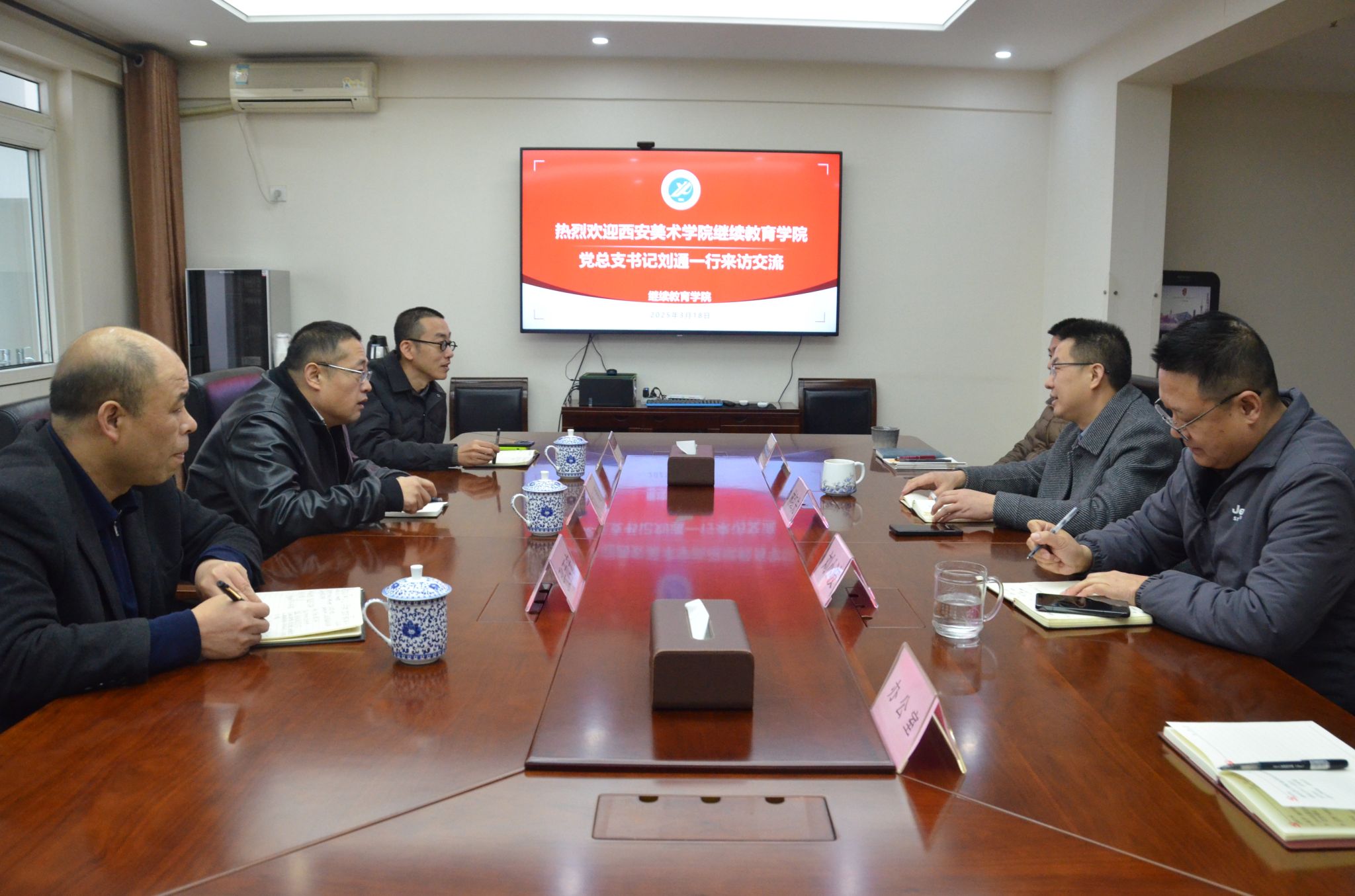 3月18日上午,西安美术学院继续教育学院党总支书记刘通一行3人来beat365继续教育学院调研交流继续教育工作。院长林红先主持座谈会,副院长刘小波及相关科室负责人参会。