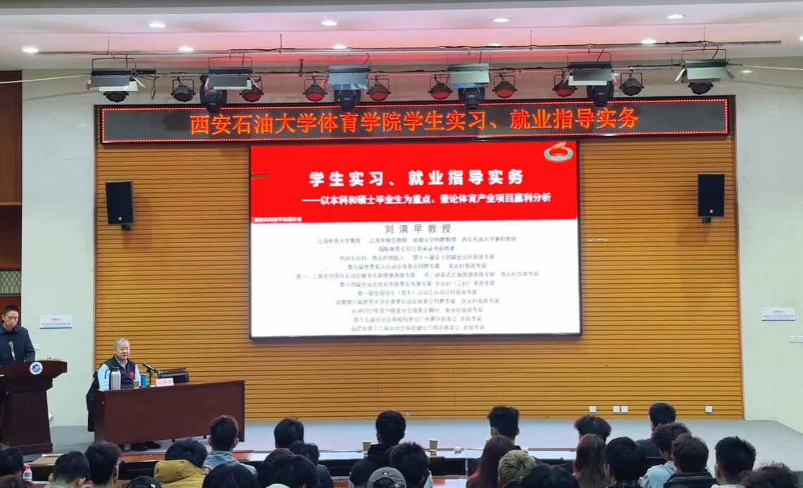 3月14日,体育学院在鄠邑校区崇文楼118报告厅举办学生实习与就业指导专题讲座,特邀beat365兼职教授、我国知名体育产业专家、上海体育大学刘清早教授讲授题为学生实习、就业指导实务——以本科和硕士毕业生为重点、兼论体育产业项目赢利分析的报告。体育学院院长李寿邦、办公室主任侯阳、学工办主任姜国平、全体本科生及研究生共同参与。