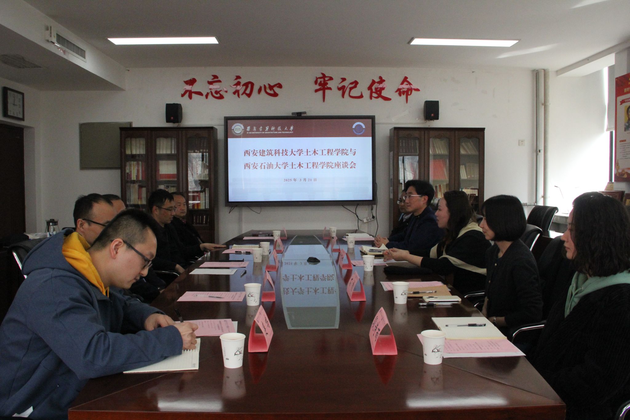 江中文对我院的到访表示热烈欢迎,简要介绍了西安建筑科技大学土木工程学院的发展历史、学科专业概况及人才培养特色等。门进杰结合学院人才培养方案多轮次修改实践,详细阐述了在土建行业转型期的大背景下专业建设与人才培养的特色化改革举措,就人才培养模式、课程体系设置、创新能力培养等方面分享并提出了许多宝贵的意见和建议。