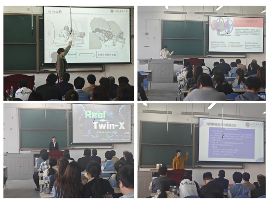 比赛分为“项目答辩”与“实物展示”两大环节。汇报答辩现场,各团队通过PPT、视频等形式,从项目背景、技术方案、创新点及社会价值等方面系统阐述作品。评委围绕技术可行性、创新性和应用前景进行提问,选手们沉着应答,展现出扎实的专业功底和敏捷的思维。实物演示环节,部分团队通过现场演示直观呈现设计成果,吸引评委及观众驻足交流。
