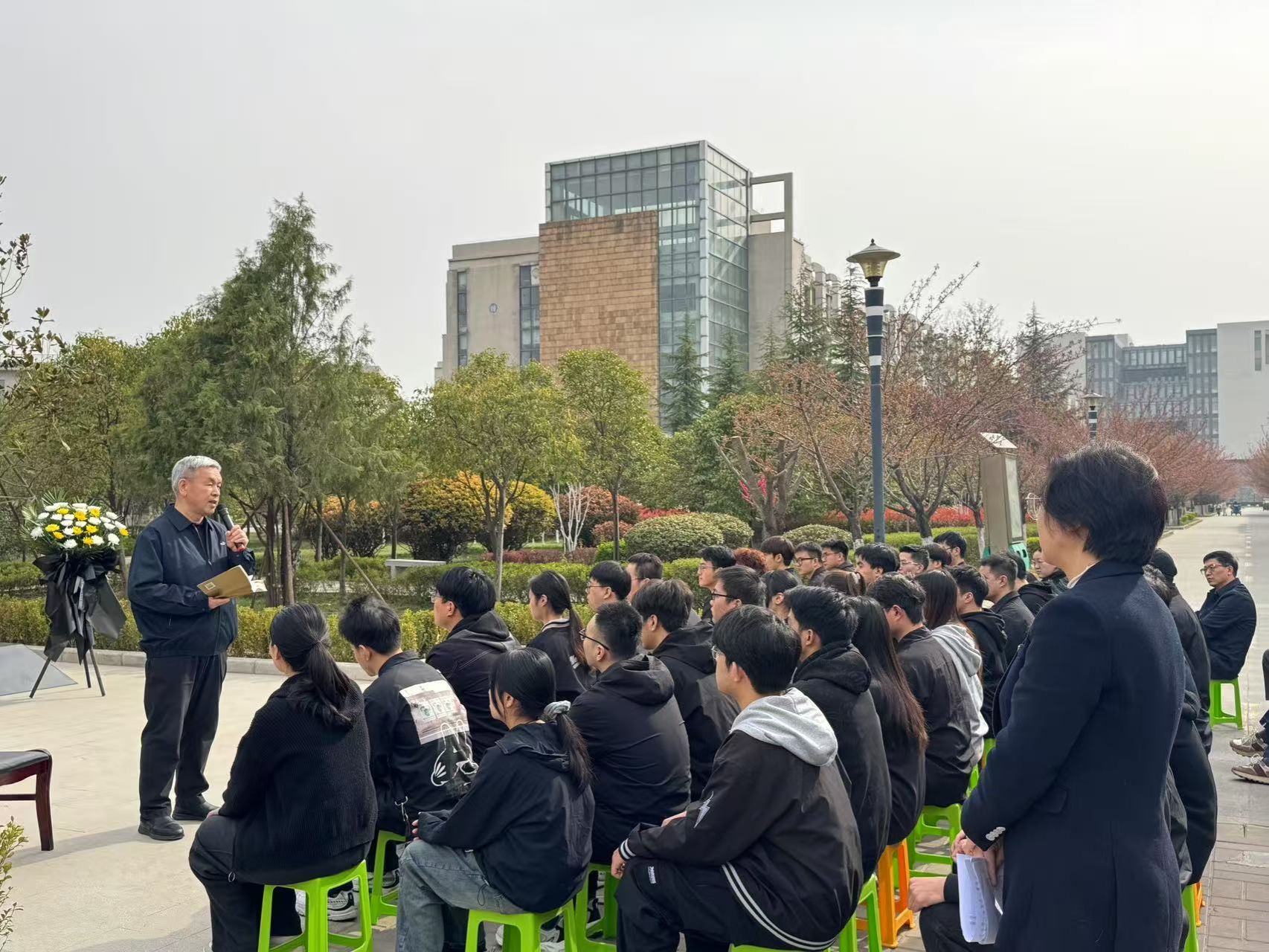 为引导青年学子继承先烈遗志、厚植爱国情怀,4月4日上午,学生工作部在鄠邑校区杜斌丞雕像广场举办“缅怀革命先烈 传承红色基因”——清明节追思杜斌丞烈士专题微党课活动。陕西省杜斌丞教育思想研究会会长杜芳滨先生、学生工作部副部长毕轶慧、经济管理学院党委副书记杨生强、辅导员代表及各学生党支部书记等50余人参与,活动由毕轶慧主持。