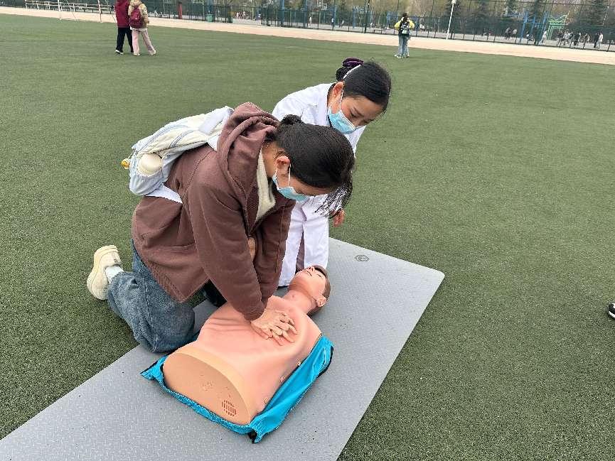 培训主要围绕突发情况下的自救互救展开,校医院主管护师、陕西省救护师资宋彦霞、解姣系统讲解了单人徒手心肺复苏术(CPR)、自动体外除颤仪(AED)的使用、气道异物梗阻急救、外伤包扎、中暑及烧烫伤应急处置等常用急救知识。通过“理论讲解+操作示范+分组实操”的递进式教学,确保学员逐步掌握技术要领。