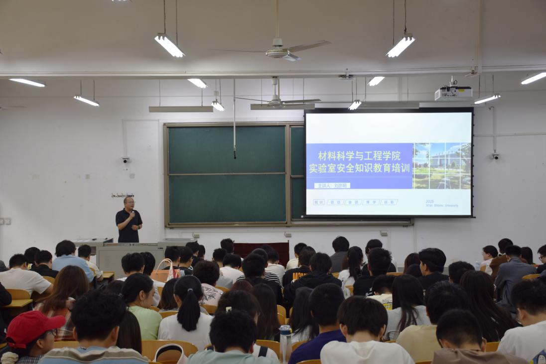 根据《陕西省教育厅办公室关于做好2025年度高等学校实验室安全工作的通知》(陕教技办〔2025〕3号)精神,为进一步贯彻落实《beat365官方网站2025年安全稳定专项行动月活动方案》文件要求,提高学生安全意识,筑牢校园安全防线,切实保障学校正常教育教学秩序和师生生命财产安全,材料科学与工程学院于4月16日在鄠邑校区博思楼B114举办了2025年度实验室安全知识培训讲座。本次培训由学院实验教学中心主任刘彦明担任主讲,学院2021级和2022级全体本科生共300余人参加培训会。培训会由学院学生工作办公室副主任赵飞主持。