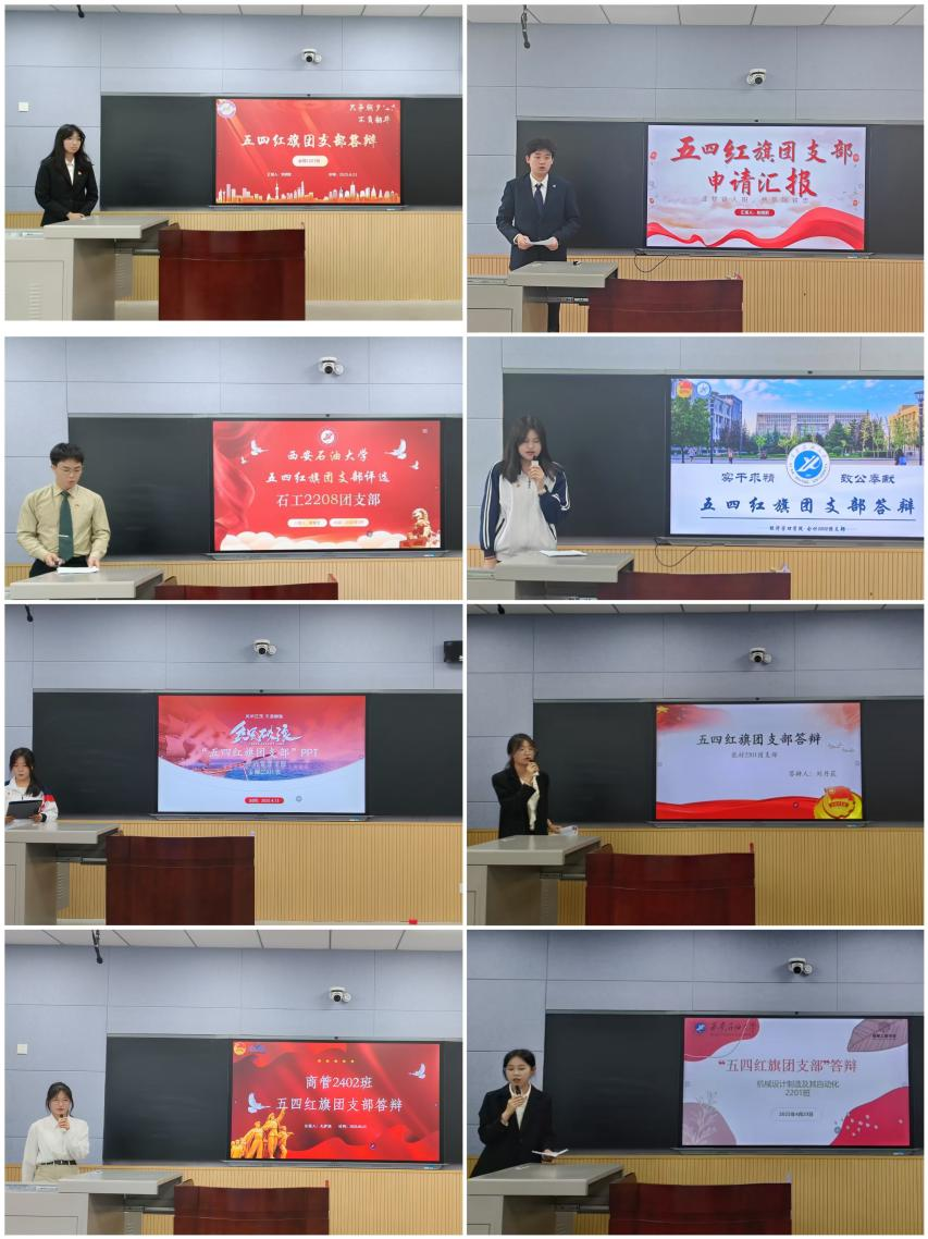 为进一步夯实基层团组织基础,强化团干部队伍建设,发挥先进典型的示范引领作用,校团委于4月23日下午在鄠邑校区博览楼A213、A215教室组织开展2024—2025学年“五四红旗团支部”评选答辩会,校团委组织部负责人、部分院(系)团委书记及团支部代表参加答辩会。