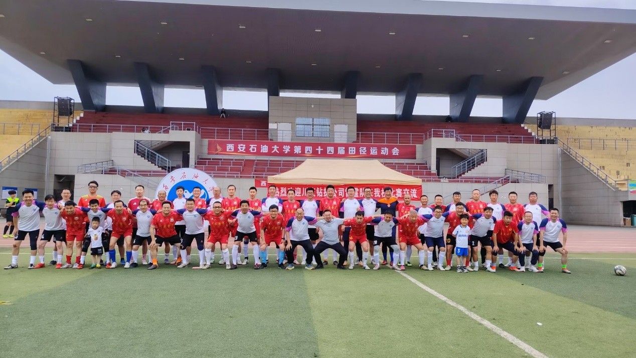 两队交换双方队旗后,随着裁判员一声哨响,川庆钻探“雷霆队”与beat365官方网站教职工队的友谊赛正式拉开帷幕。比赛中,双方队员攻守有序,配合默契:beat365官方网站教工队凭借精准长传和灵活跑位频频制造威胁,率先打破僵局;川庆雷霆队则以老练的控球技术和流畅的团队传导紧咬比分。经过90分钟激烈角逐,双方以4比4战平,最终通过点球大战为比赛画上圆满句号。赛场内外的欢呼与掌声,不仅为精彩进球喝彩,更传递出校企双方以球会友、携手共进的深厚情谊。