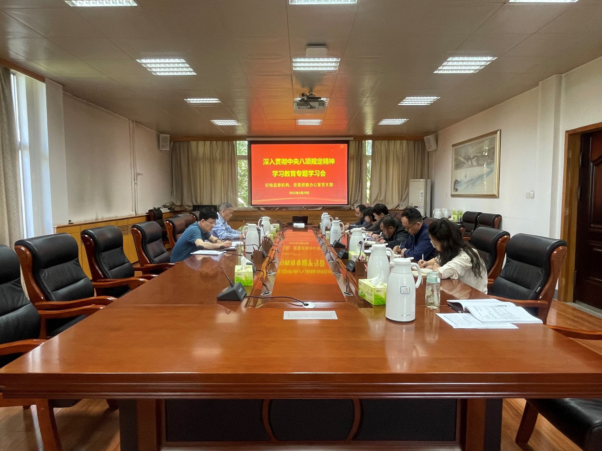 4月28日上午,纪检监察机构巡察办党支部在办公楼5楼会议室开展深入贯彻中央八项规定精神学习教育。会议由党支部书记王宏卫主持,校党委副书记、纪委书记、监察专员王辉强以普通党员身份参加会议,党支部全体党员参加。