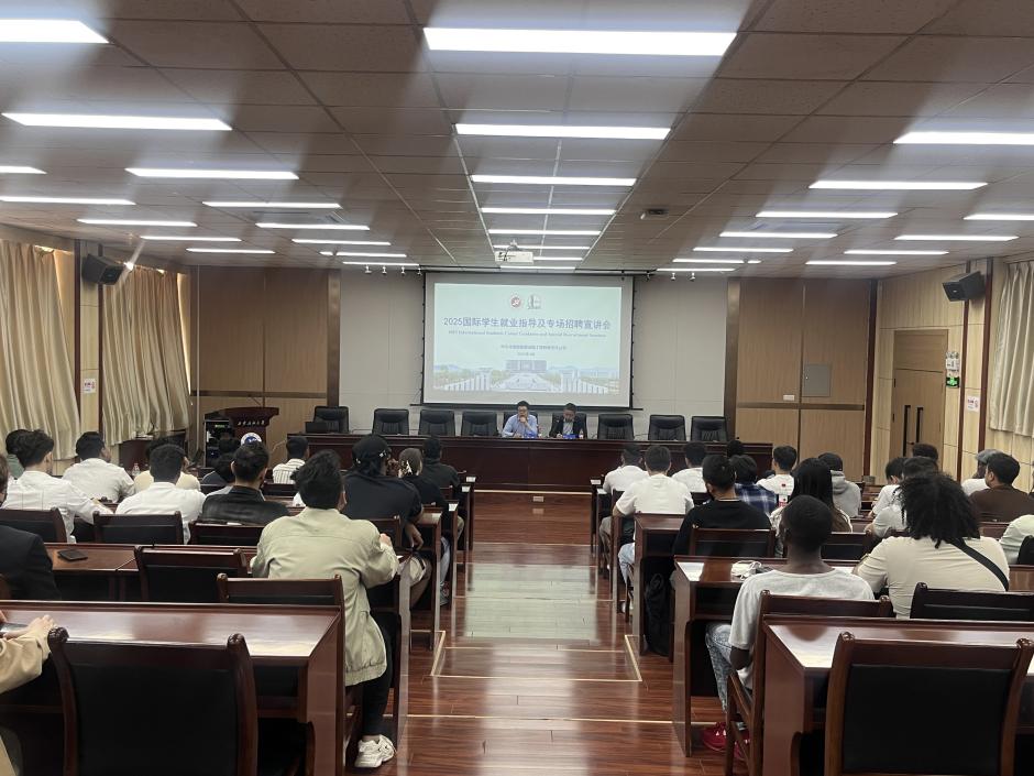 4月28日下午,国际教育学院邀请中石化重型起重运输工程有限责任公司来校举办专场招聘会,会议在雁塔校区会议中心第五会议室举行。公司运输中心党总支书记刘磊、工程师贾佳民,国际教育学院副院长黄恺、国际学生工作办公室主任韩旭、学院全体辅导员以及50余名国际学生参加。