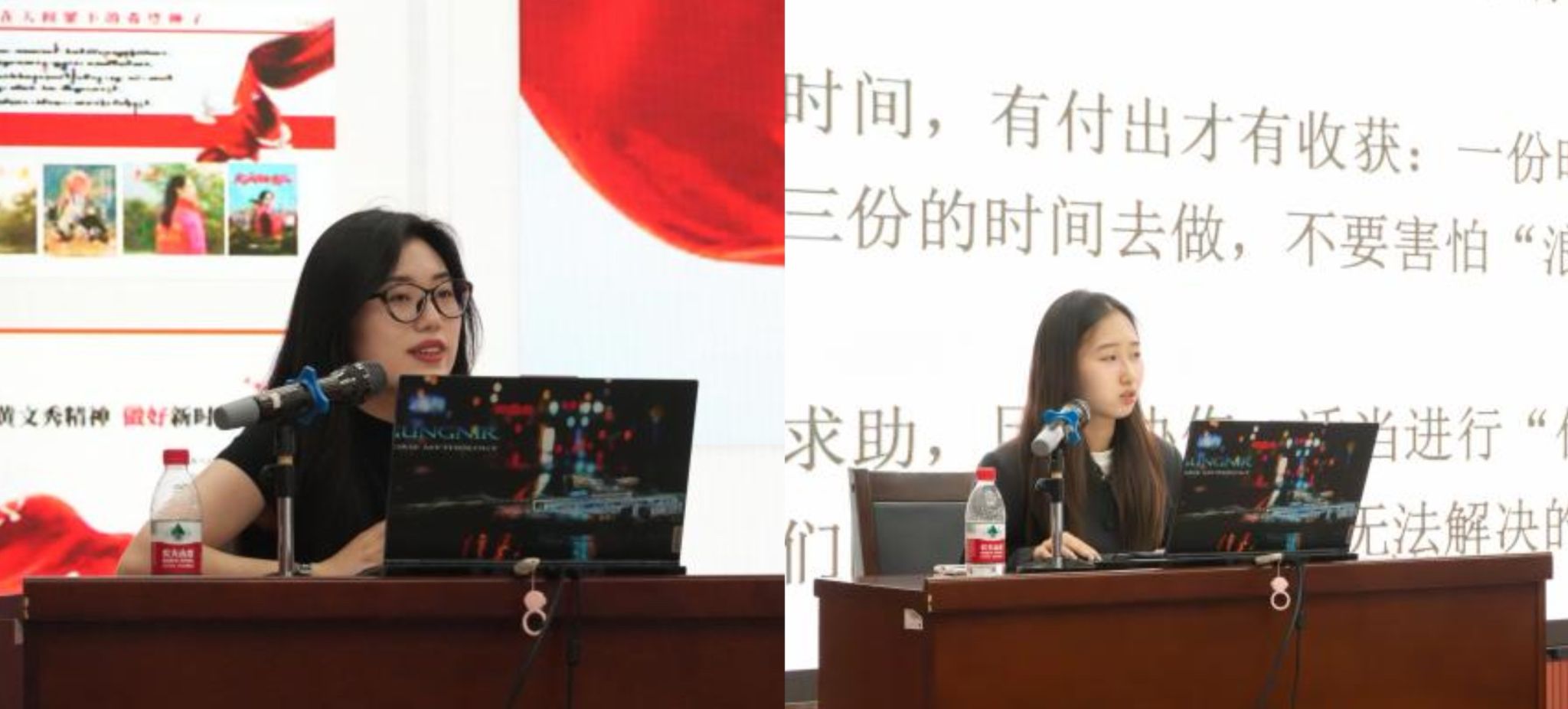 4月16日,培训班首讲邀请西北大学校学生会执行主席陶诗雅、青年先锋宣讲团成员马雪凝担任主讲嘉宾。陶诗雅以《我的学生干部经历与思考》为题,从“选择”“平衡”“初心”三个维度,分享了统筹大型活动、平衡学业与工作的经验,提出“从执行者到引领者”的成长路径。马雪凝以《学习黄文秀精神 做好新时代长征人》为主题,通过黄文秀扎根脱贫攻坚一线的感人事迹,号召学员将个人理想融入社会发展。