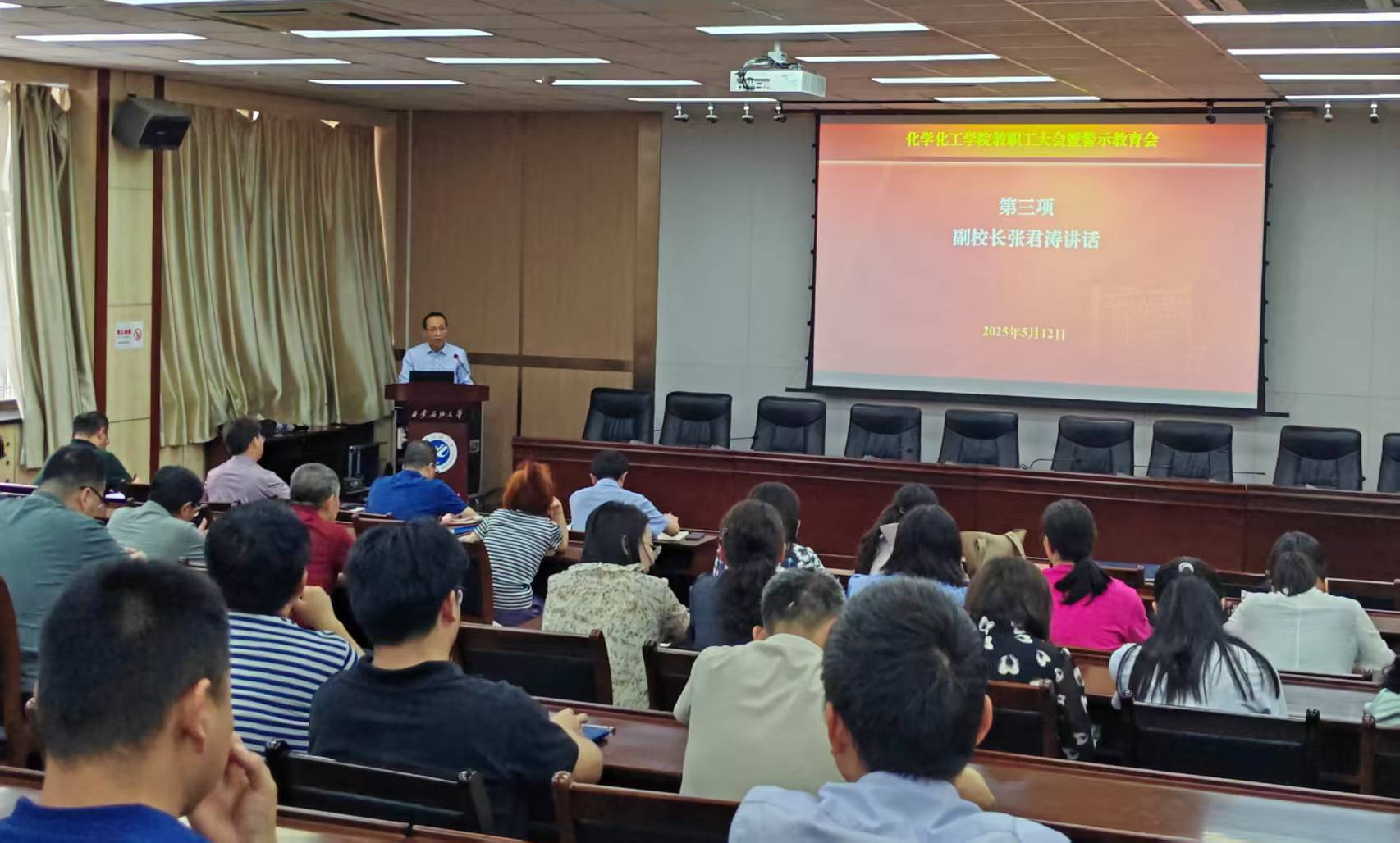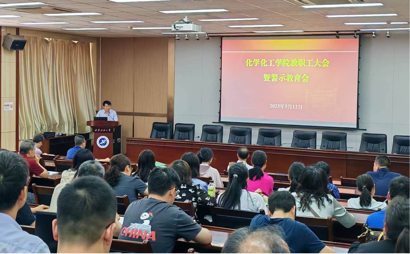 为深入贯彻中央八项规定精神学习教育,全面推进学院年度重点工作,持续强化教职工作风建设,5月12日下午,化学化工学院教职工大会暨警示教育会在雁塔校区会议中心第五会议室召开,学院全体教职工参会,会议由学院党委书记高小明主持。