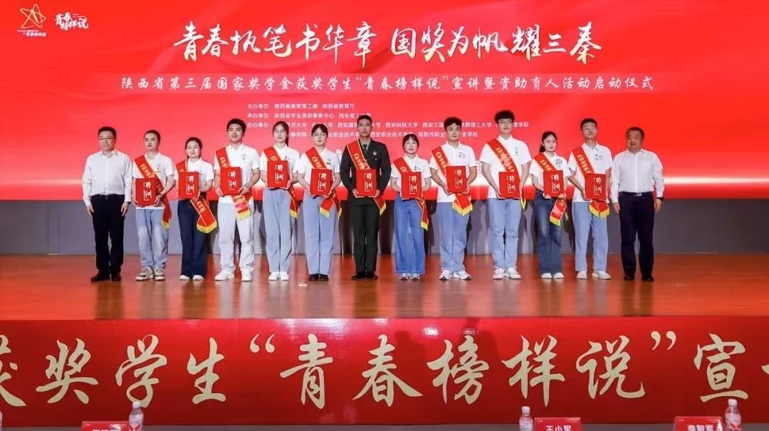 宣讲环节,西安理工大学耿晶以 “追光之旅” 分享竞赛逐梦历程,呼吁青年扎根祖国需要之处;西安工程大学梁振宇讲述退役复学后的坚守担当,榜样们用奋斗故事传递着拼搏向上的精神力量。