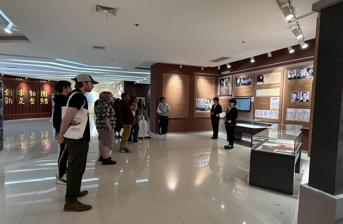 之后,美国学生漫步校园,感受中式建筑与现代校园风貌的交融,中美学生相互分享各自的校园生活、文化习俗,碰撞出多元文化交流的火花,结下了深厚友谊。