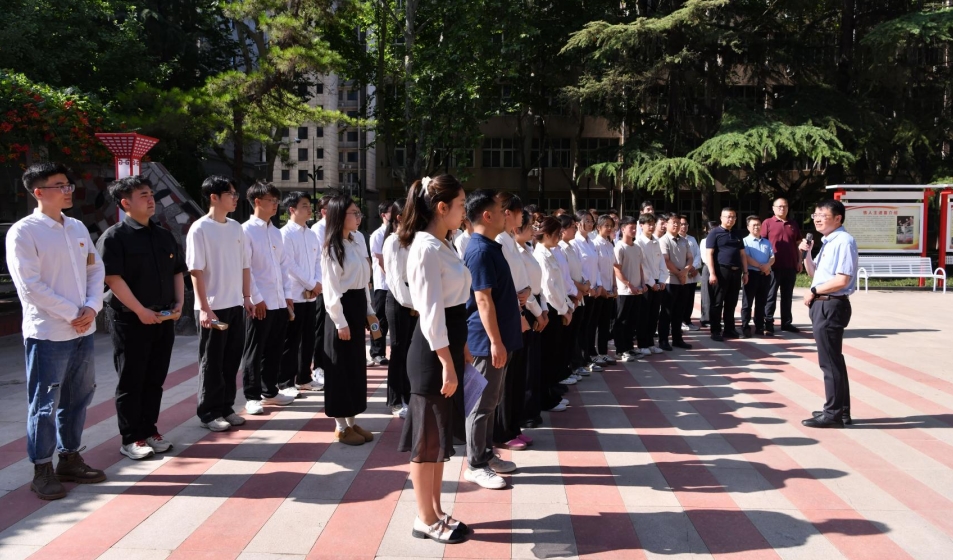6月5日上午,化学化工学院2025届毕业班研究生党支部在雁塔校区铁人广场开展“传承铁人精神,争做西部铁人”主题党日活动,学院党委书记高小明、副书记祁帆、副院长李善建、范峥,学工办主任秦岭、组织员李超伟以及2025届研究生毕业班党员40余人参加了主题党日活动,本次活动由研究生第二党支部副书记韩佳欣同志主持。